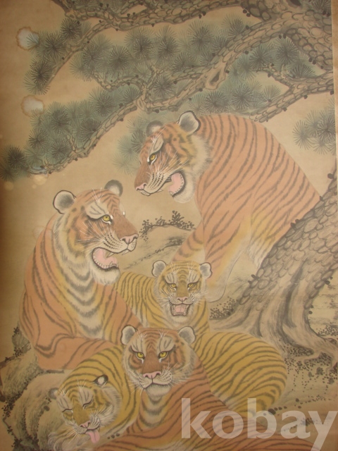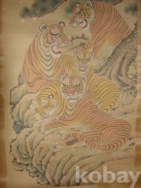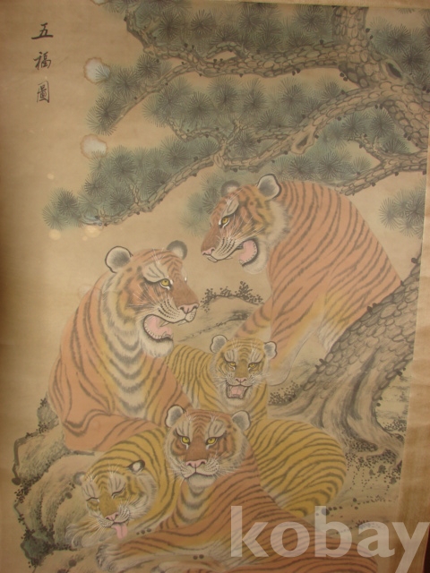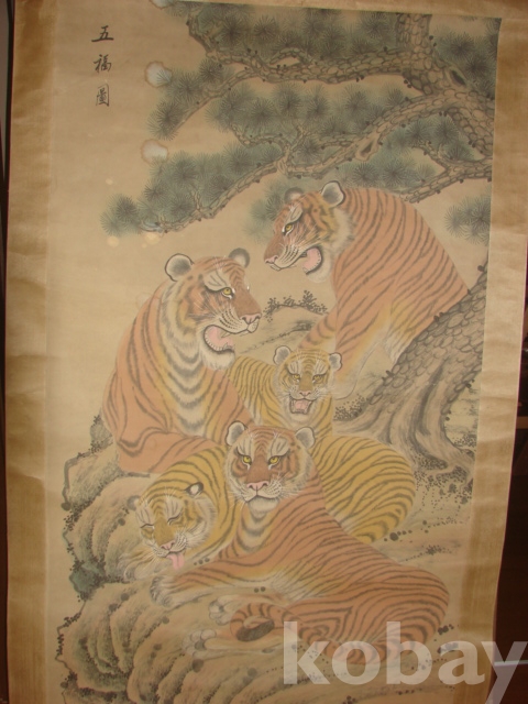중국의 호랑이 가족 대형 그림 “오복도”족자(173×94)입니다.