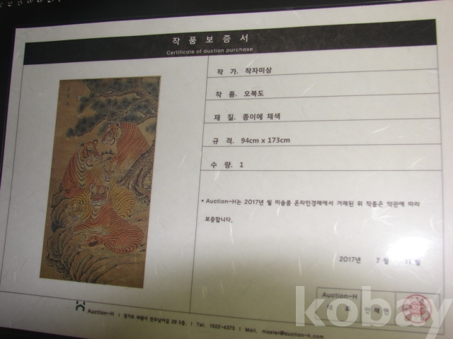 # H-옥션 작품보증서있음. 족자는 낡았음. 대형이라 택배가 어렵습니다.