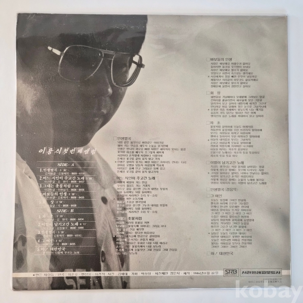 [추억의 희귀 LP 기획전] (이용식) 첫번째 앨범 / 인생별곡 ☆ 어느 시인이 주고간 노래
