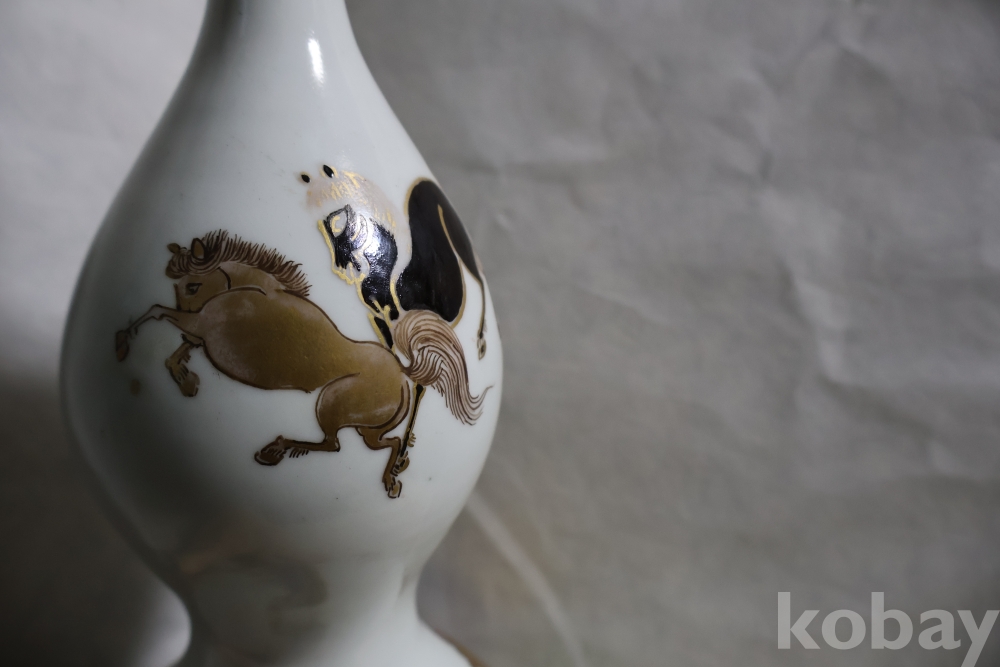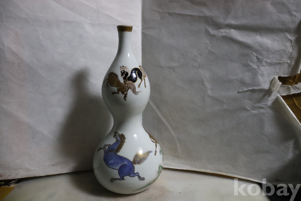 3마리 아래 위로 힘찬 말그림을 가진 무개감이 대단한 명물 임니다 유일무이한 당대의 명품 임니다 입술에는 세월의 미세한칩이 보임니다 서울 지역만 판매 직배 함니다