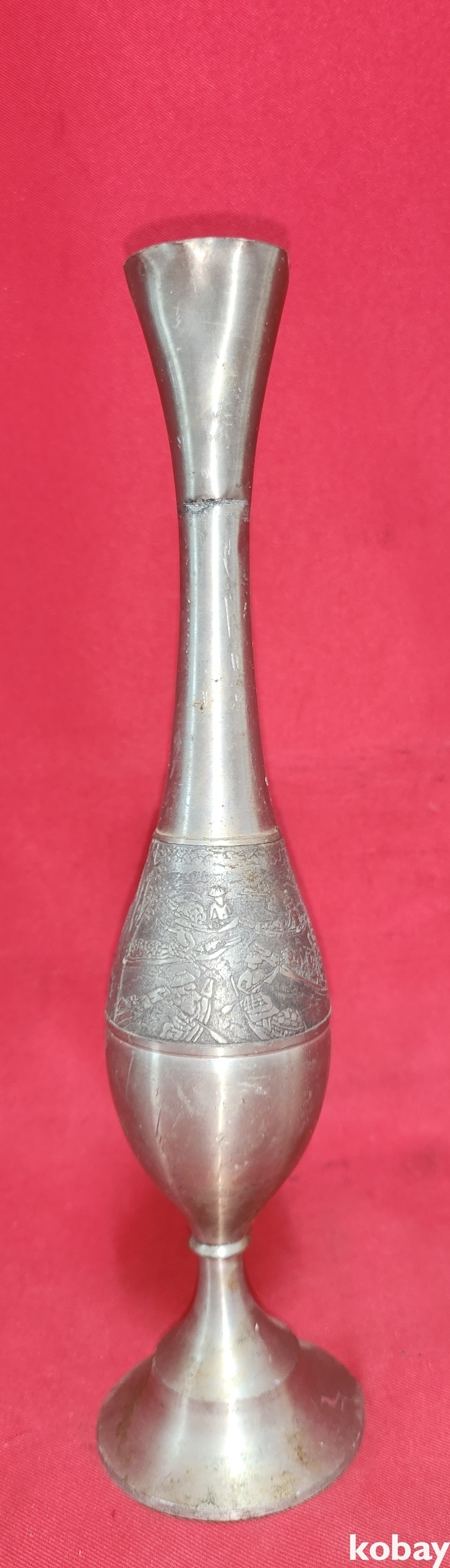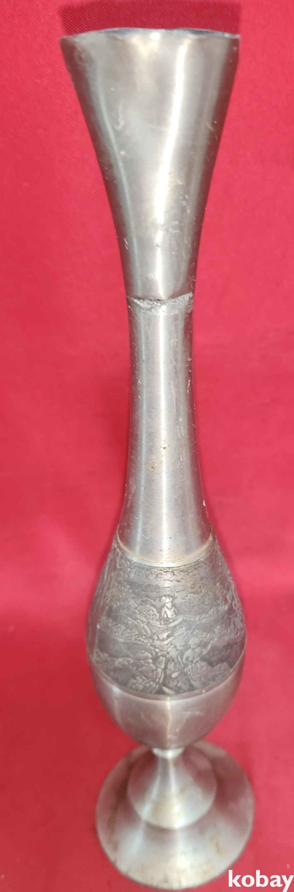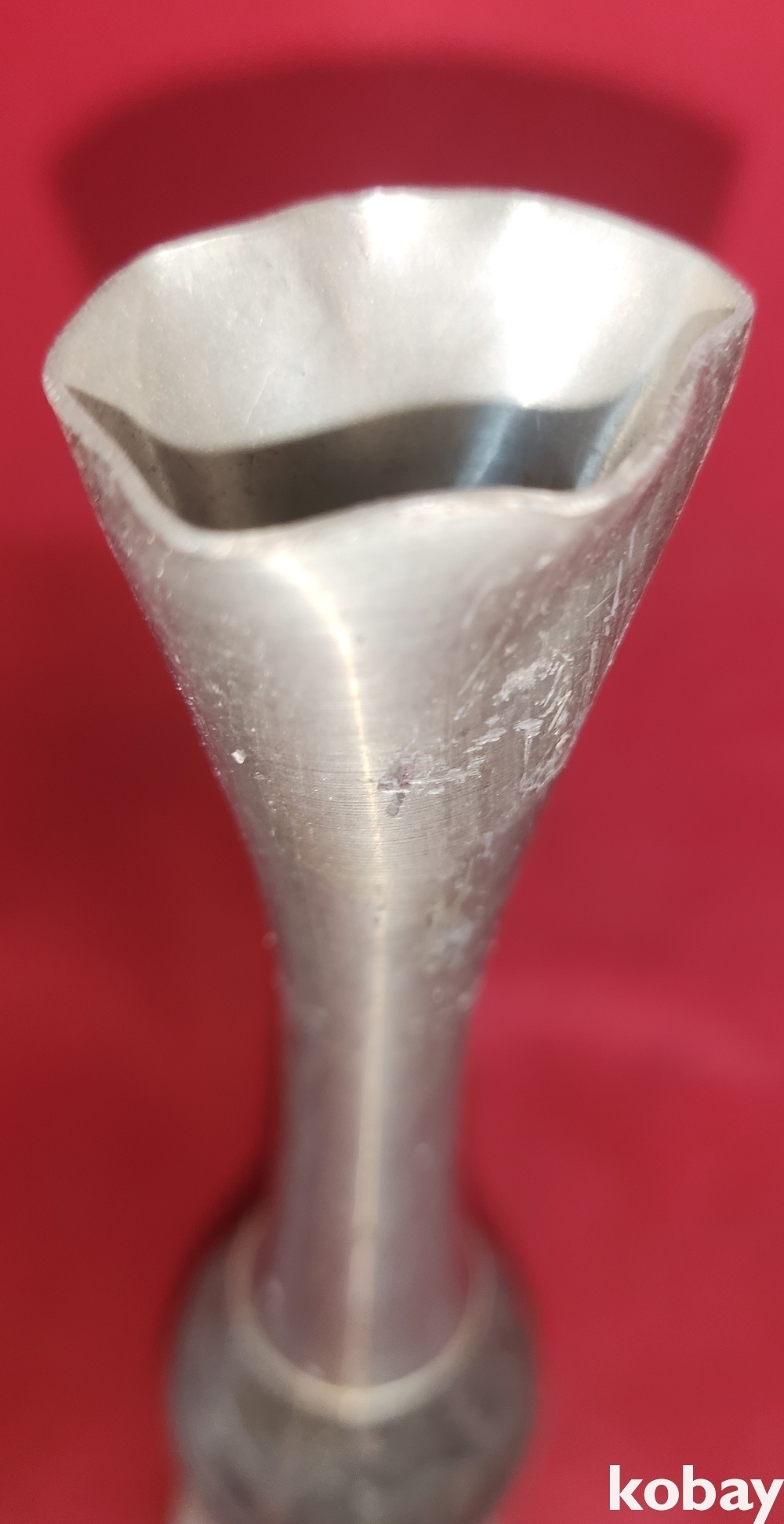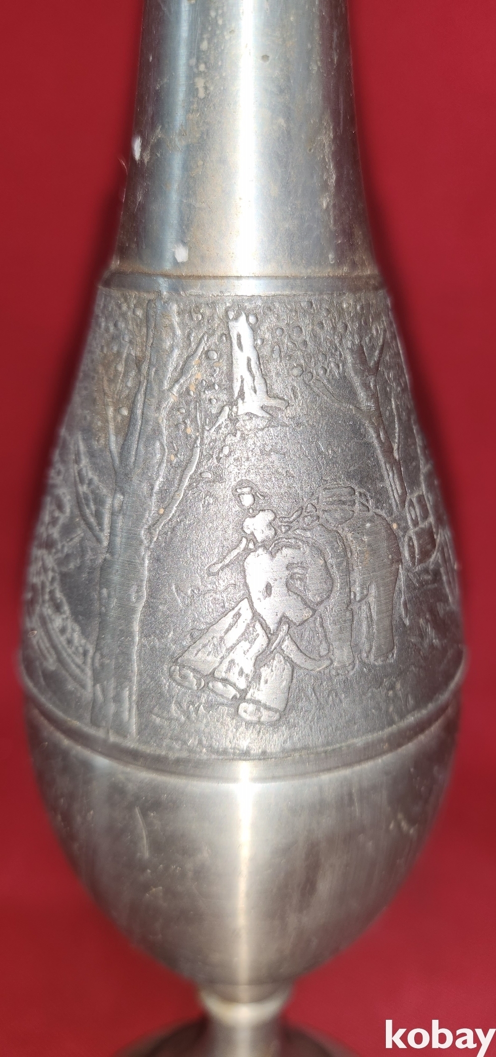 백동으로 완성된 수림 산수 문양 화병입니다,