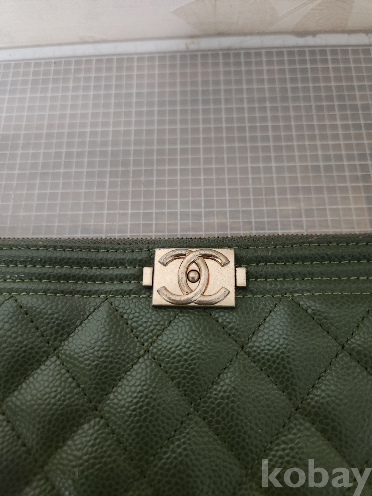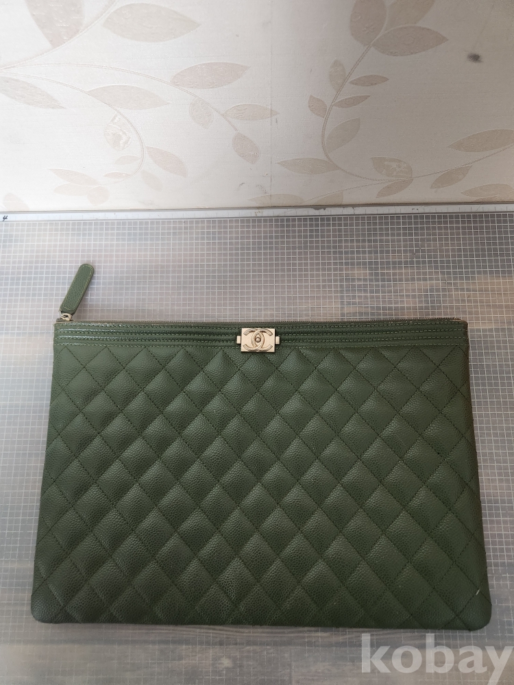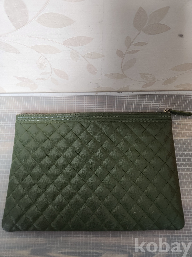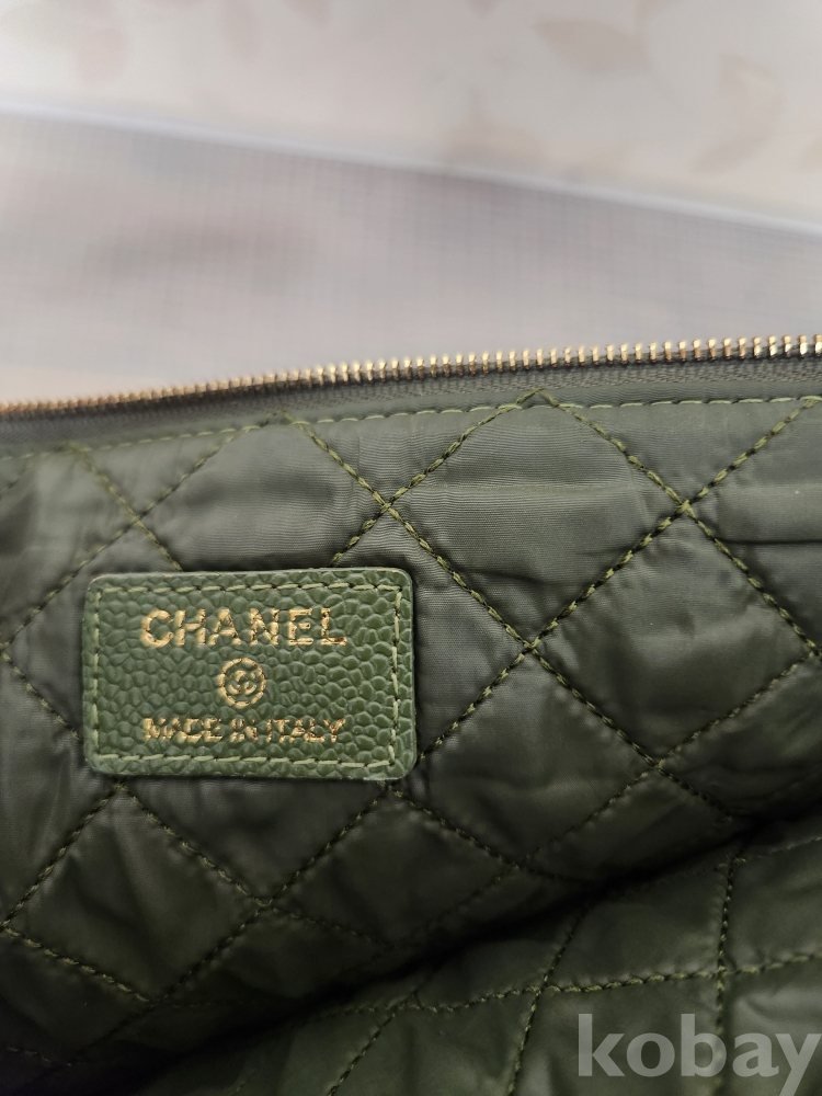 색상은 올리브색이고 퀼팅 디자인이 특징입니다