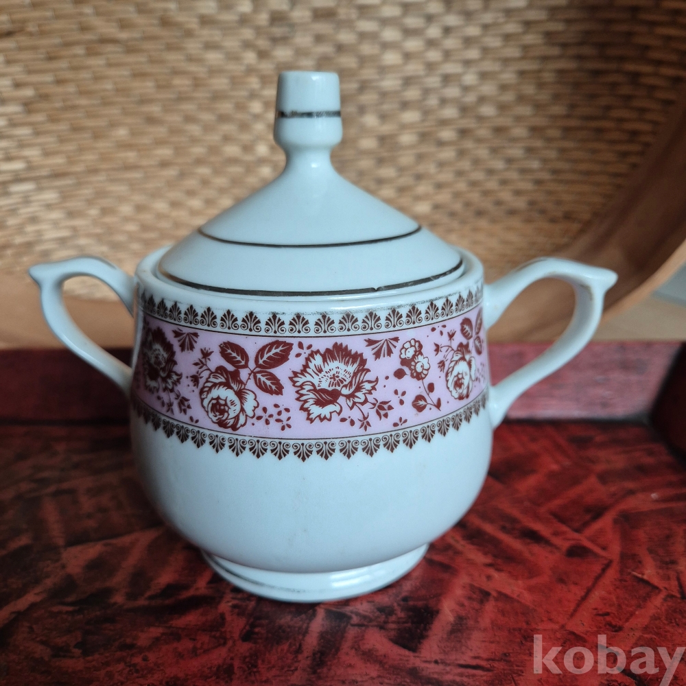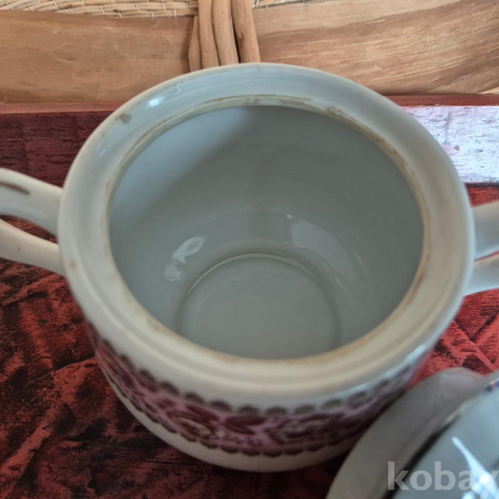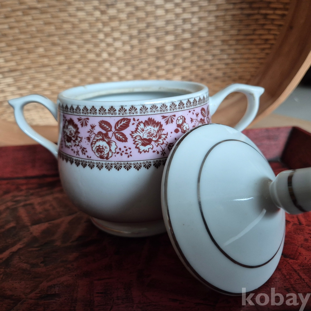 1980~90년대 국내 생산 제품으로 버건디 플로럴 띠 무늬가 특징입니다.