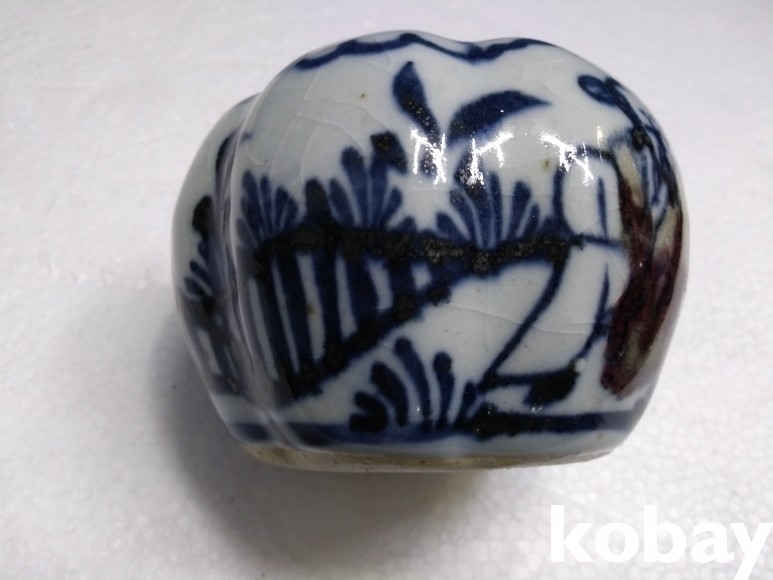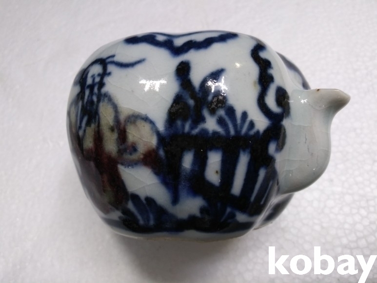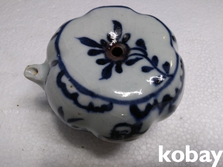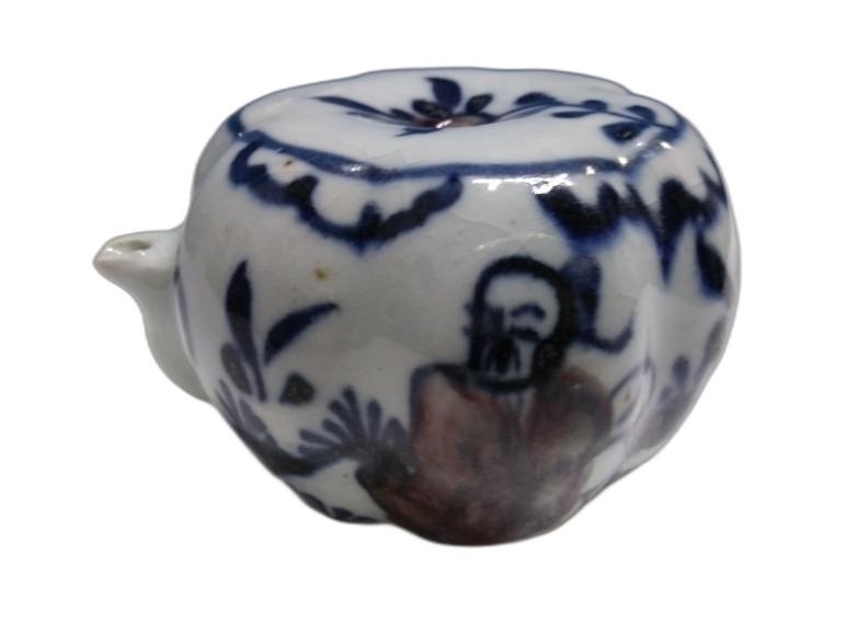 호박 모양에 인물 문양이 있는 연적 도자기 입니다.