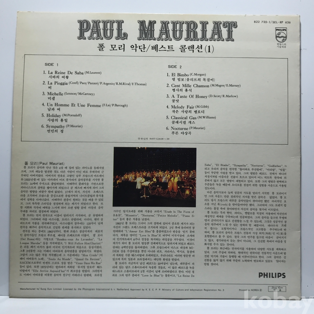 LP 86,000-41 Paul Mauriat - Best Collection (I) . 자켓 EX+ 알판 EX+ 87 년 국내반