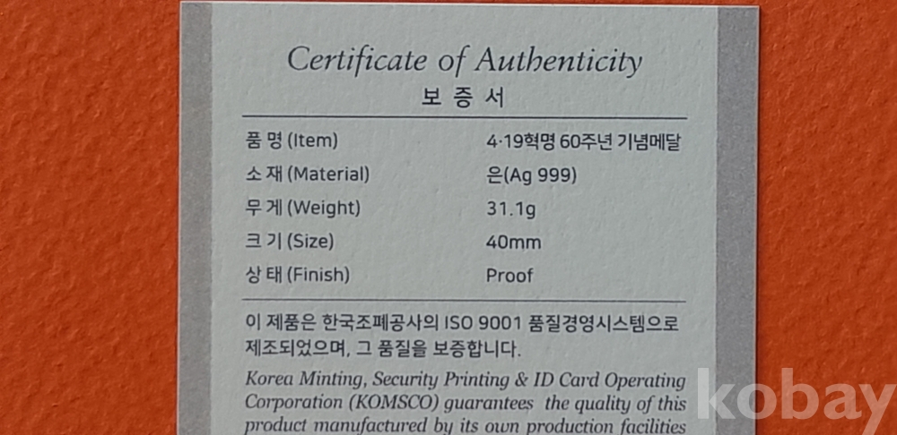 2020년 4.19혁명 60주년 기념 메달 입니다.