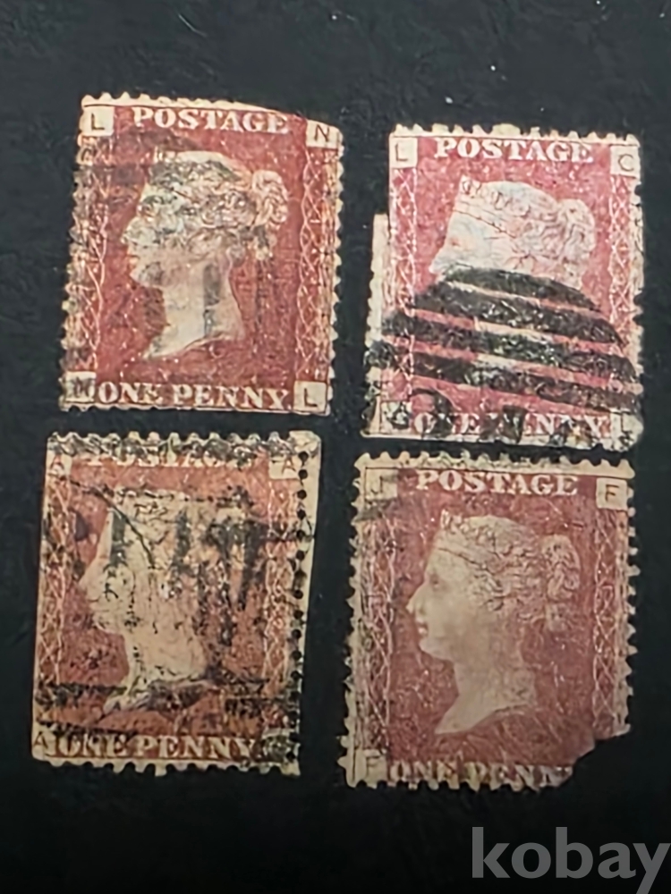 영국 레드 원 페니 1854년~ 사용한 희귀 우표 4장 일괄. 세계 최초 우표 시리즈 클래식 우표.