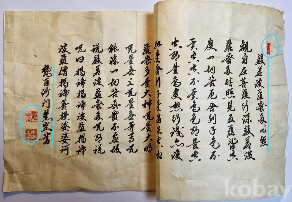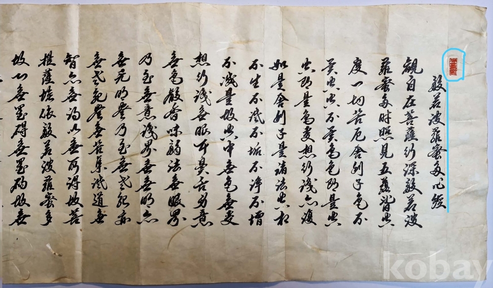 ◈ 혜공(慧空)이 쓴 반야심경 복사본이다.