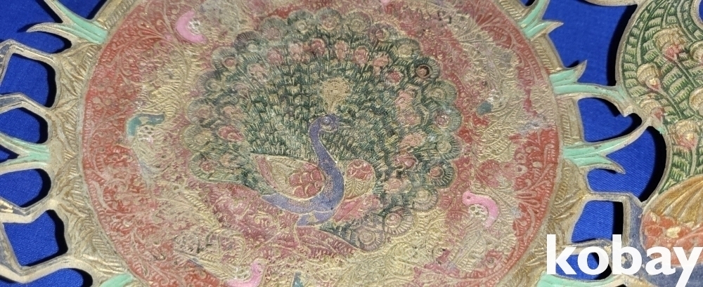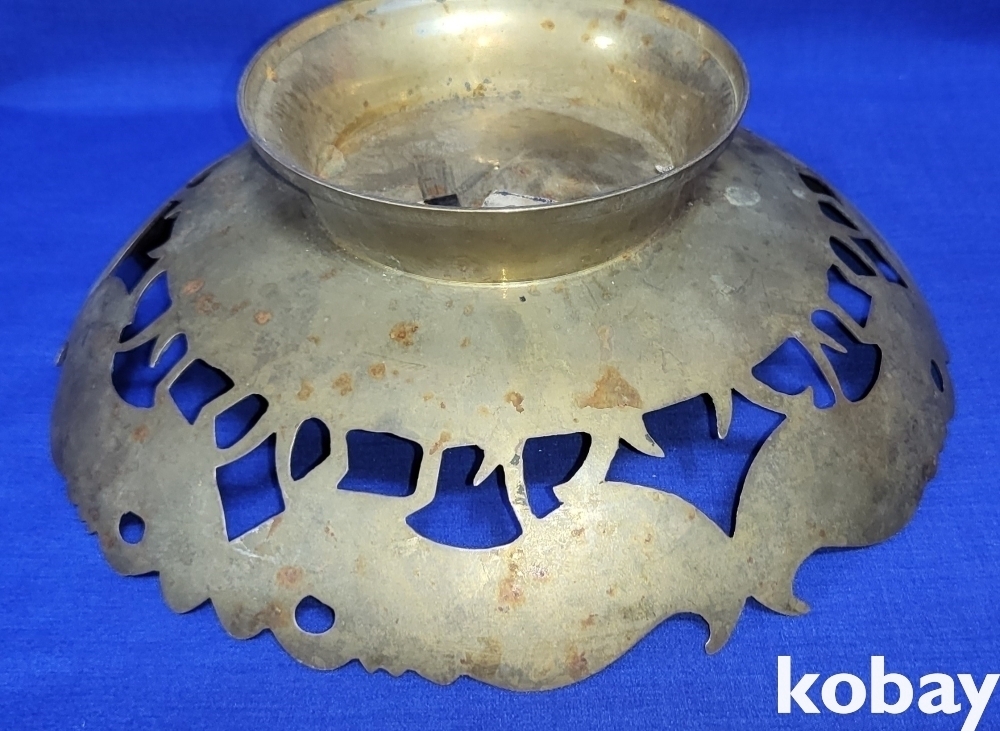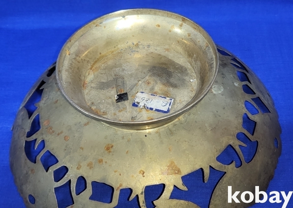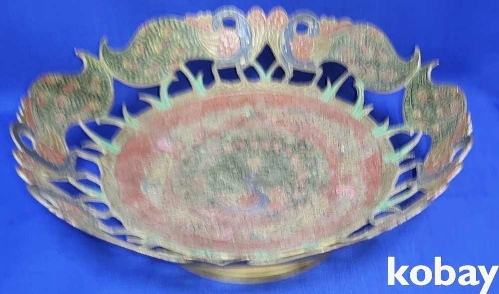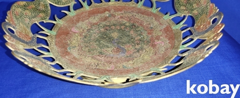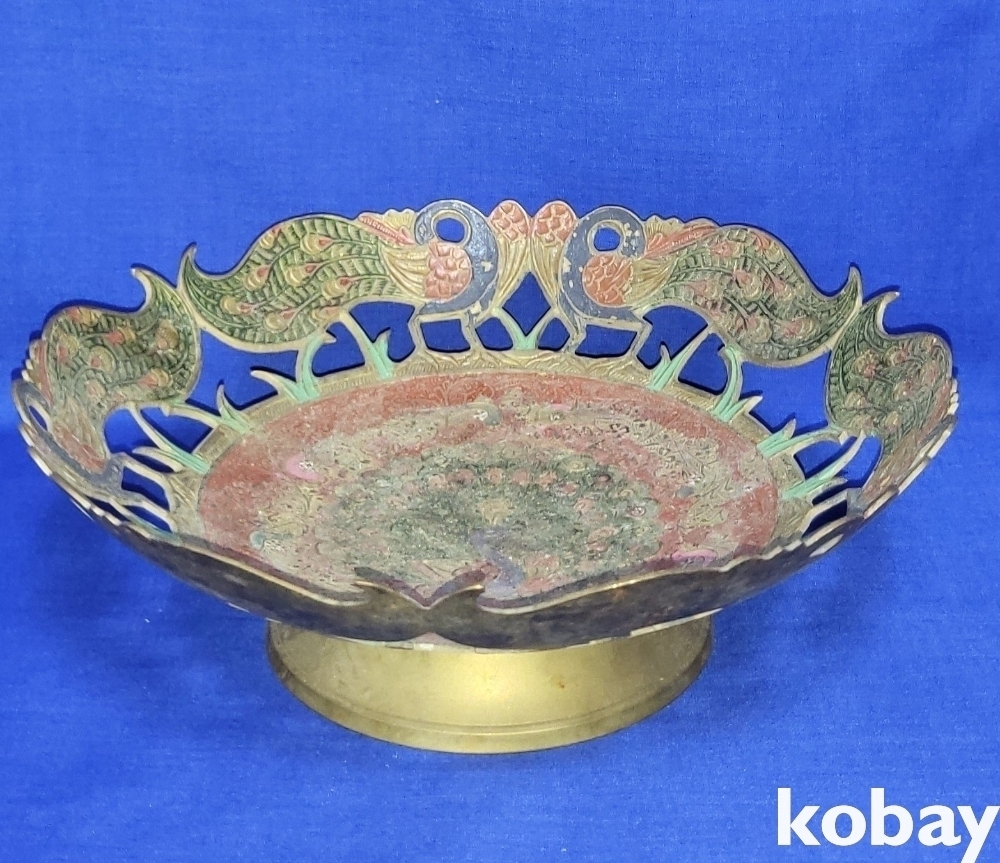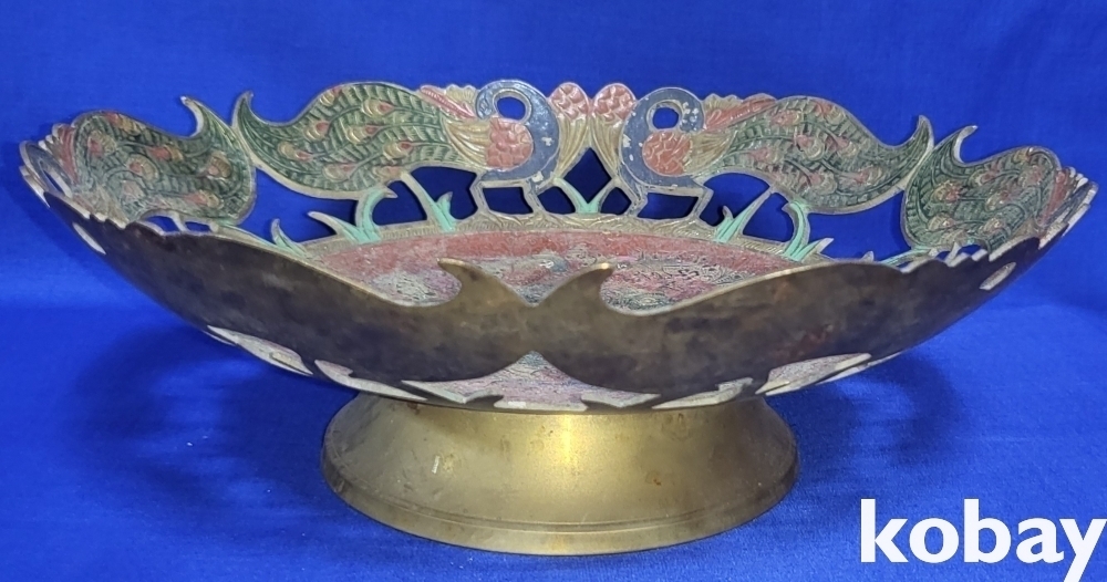 동태 범랑으로 완성된 공작새( 孔雀鳥)문양 투각 과일담는 그릇 입니다,