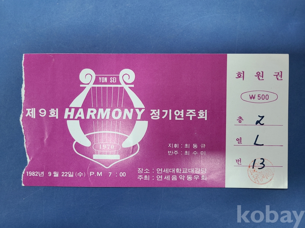연극,공연,콘서트 등 관람권*제9회 HARMONY 정기연주회/1982년9월22일 연세대학교대강당