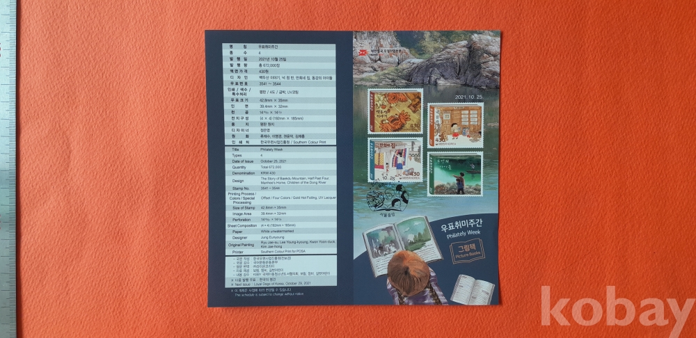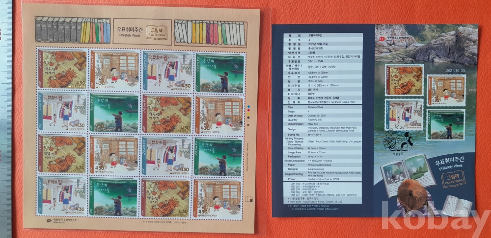2021년 430원 우표취미주간 16매 전지(안내카드 포함) 입니다.