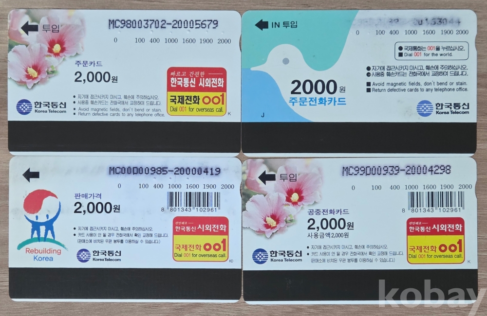 8-90년대 제작된 공중전화카드 4종일괄입니다 (사용제)