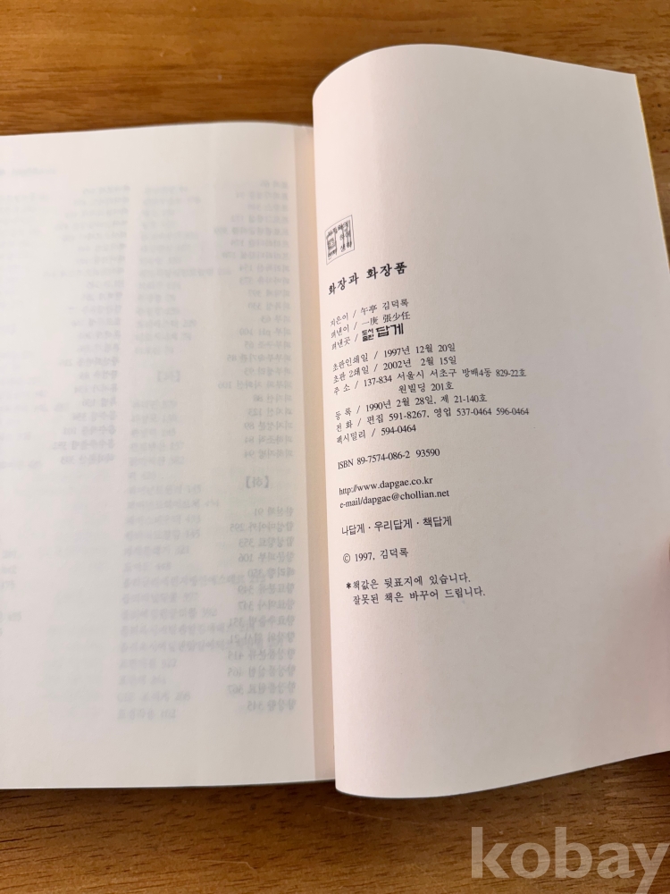 [한국문화사, 화장의 역사] 김덕록, <화장과 화장품 : 향장의 이론과 실제>, 답게, 2002, p. 509, 상태 중상급(사진참조)