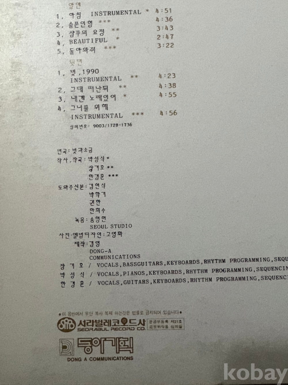 ★★(가요음반 LP) '빛과소금 vol.1' 서라벌 레코드사-1980년 [NM이상급)