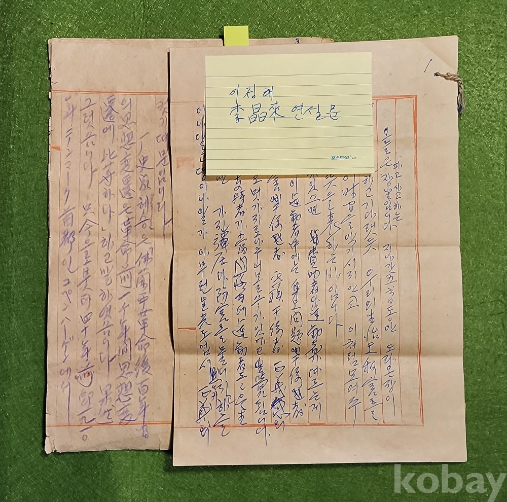 이정래의 선거 연설문 원고 1권 5장, 2권 8장.