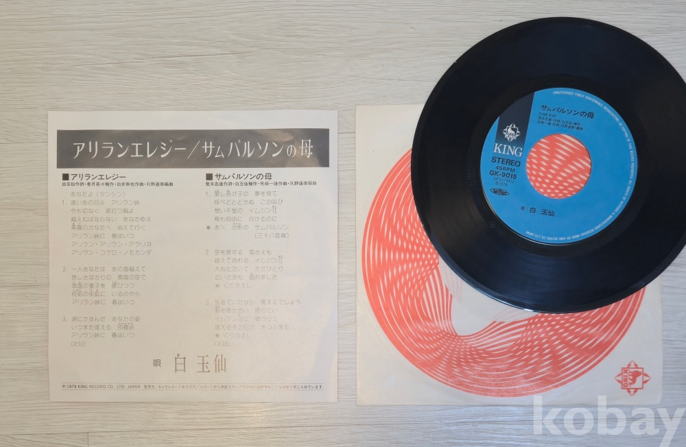 제일교포 가수 백옥선이 부르는 '아리랑엘레지'가 수록된 7인치 EP음반 - 일본 제작 입니다.
