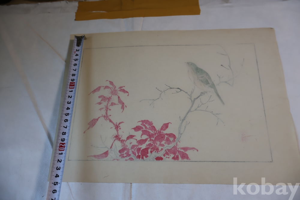 1930 대 목판화 새 임니다 아름다운 디자인 구도 섬세 함을 가진 명화 임니다 화가의 낙관이 보임니다