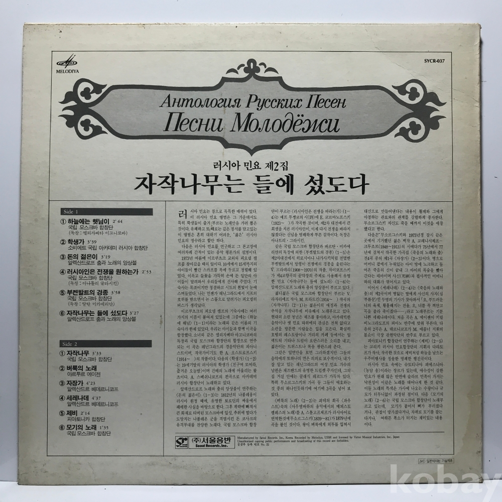 LP 85,000-86 Various Artists - Anthology of Russian Songs . 자켓 EX 알판 EX+ 88 년 국내반