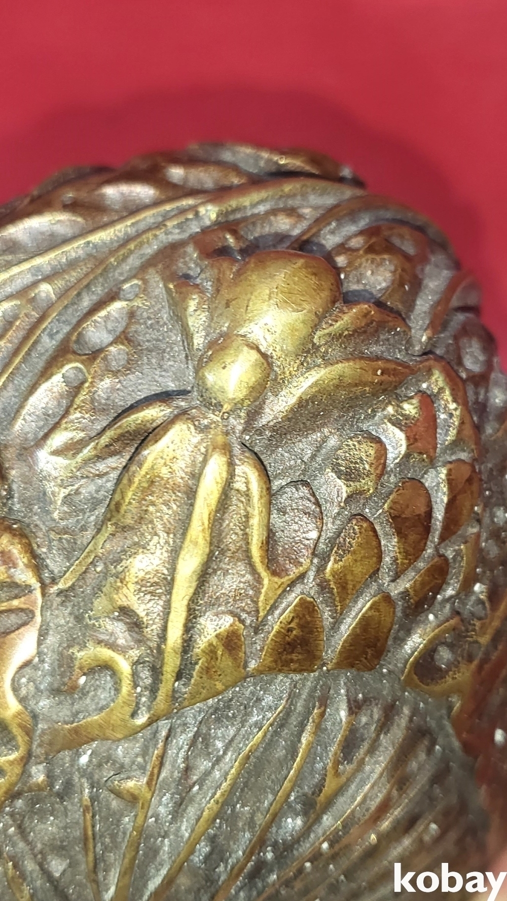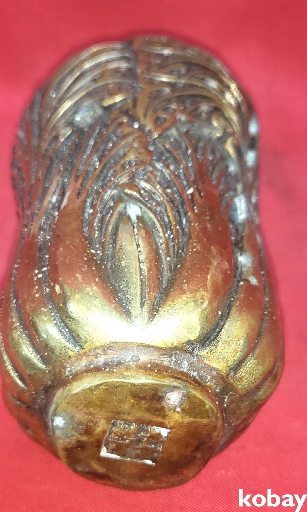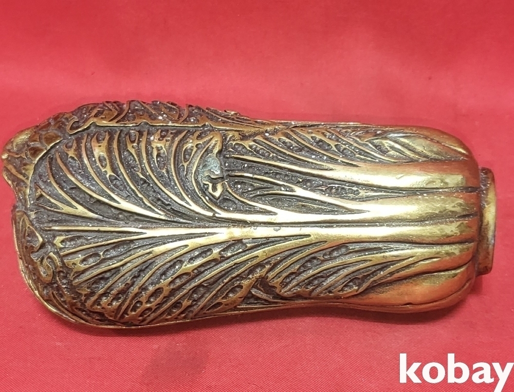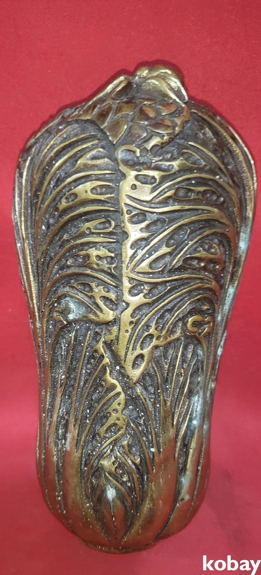 건륭연제 청동 배추와 벌래 문양 배추와 곤충(거미) 조각품입니다,