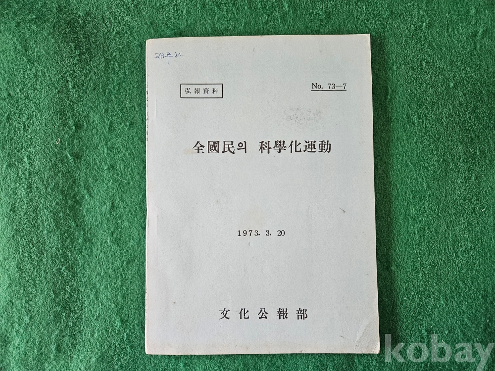 1] 품명 : 문화공보부에거 발행한 " 全國民 의 科學化運動 "
