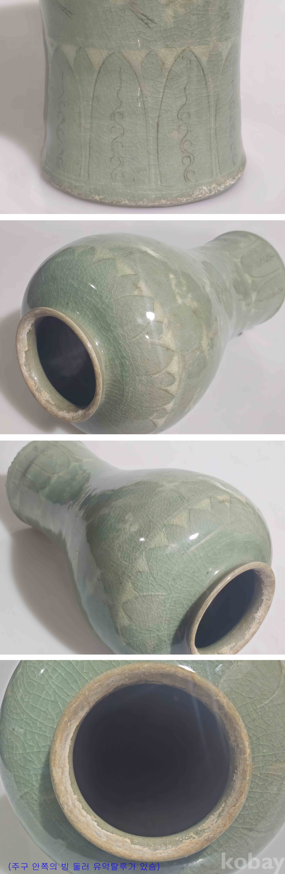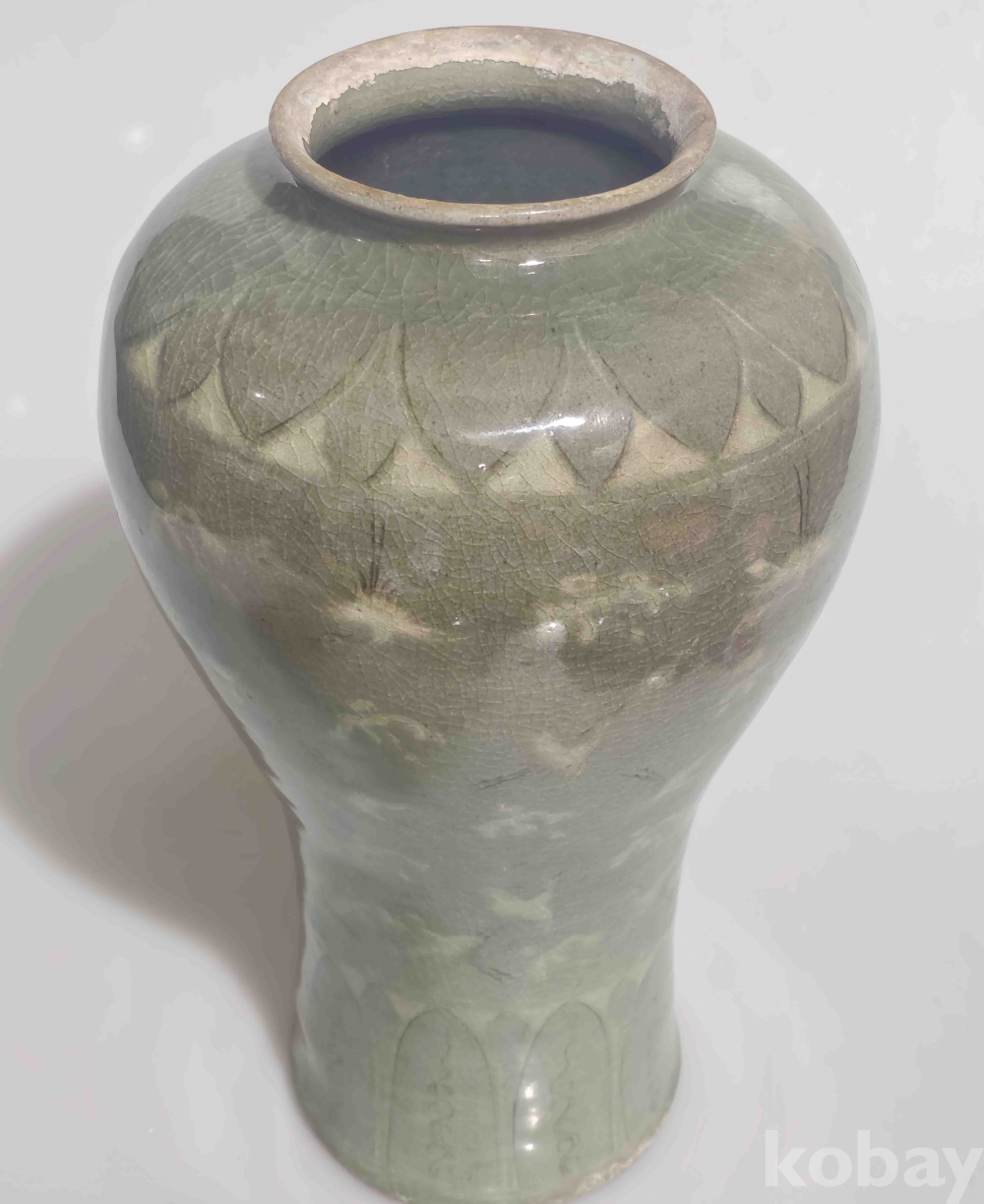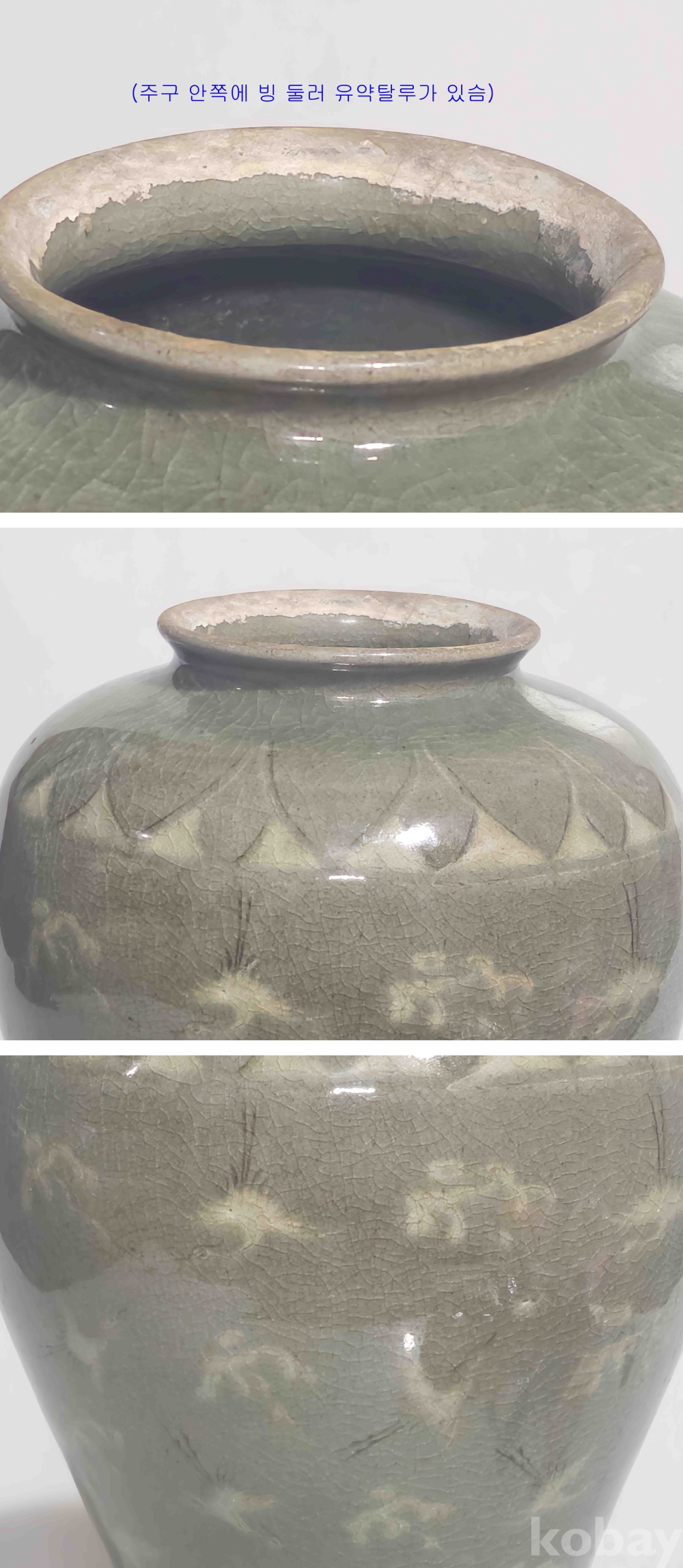 상품 설명 | 연대감 좋은 청자 흑백상감 운학문 매병입니다. 상태 양호 합니다. 주구 안쪽에 빙둘러 유약탈루가 있으며 몸통상부에 이색진 부분이 있습니다. 흑백상감으로 운학문을 시문하여 기물의 격을 높였습니다. 참고로 사진은 확대한 상태이며 설명 못한 부분은 사진으로 대체합니다. 흔한 기물이 아니기에 소장의 가치가 높습니다. | ||