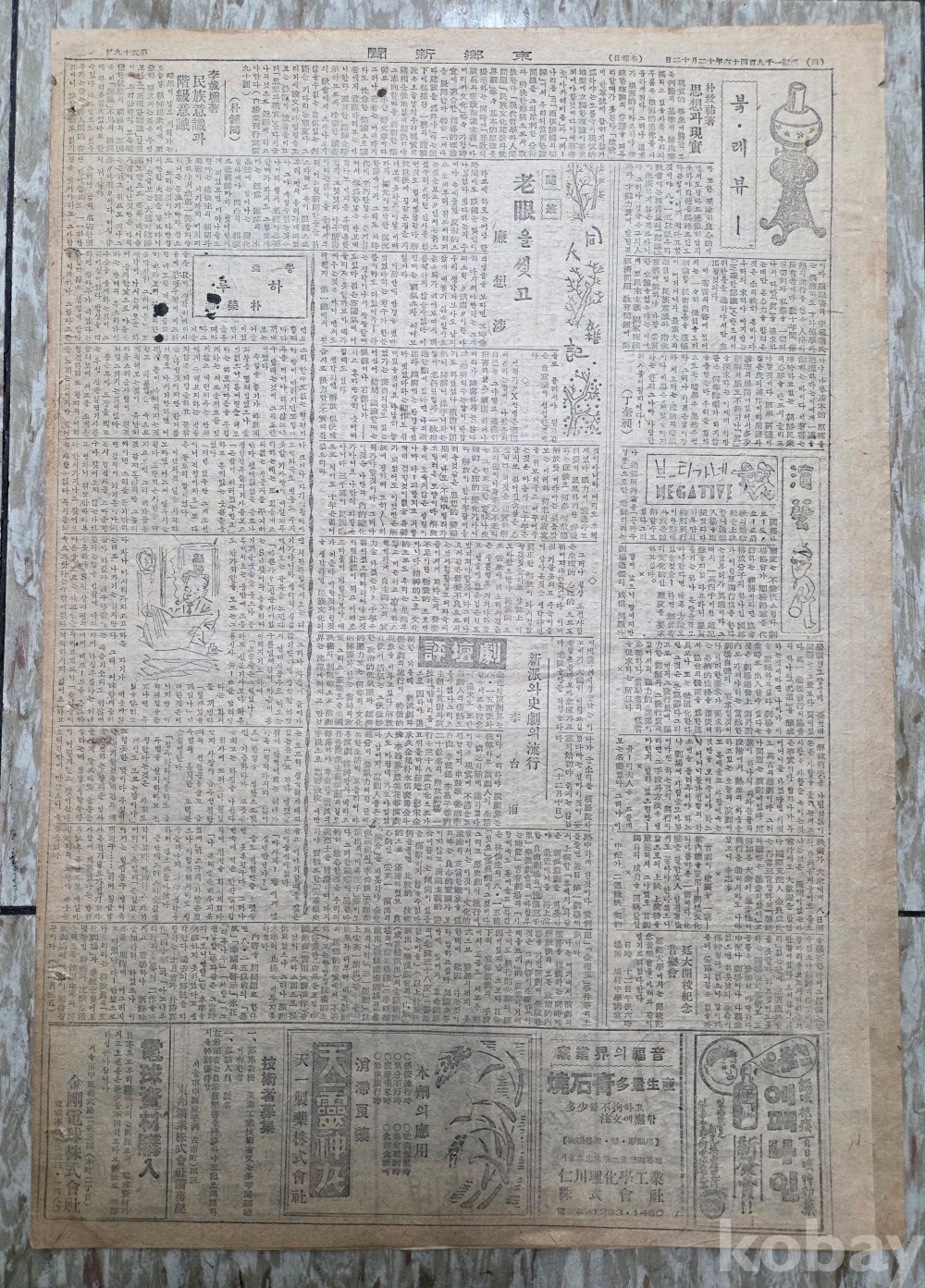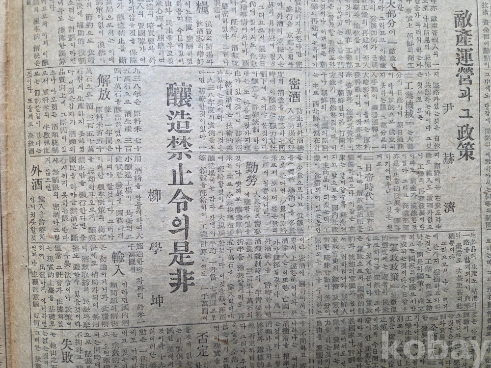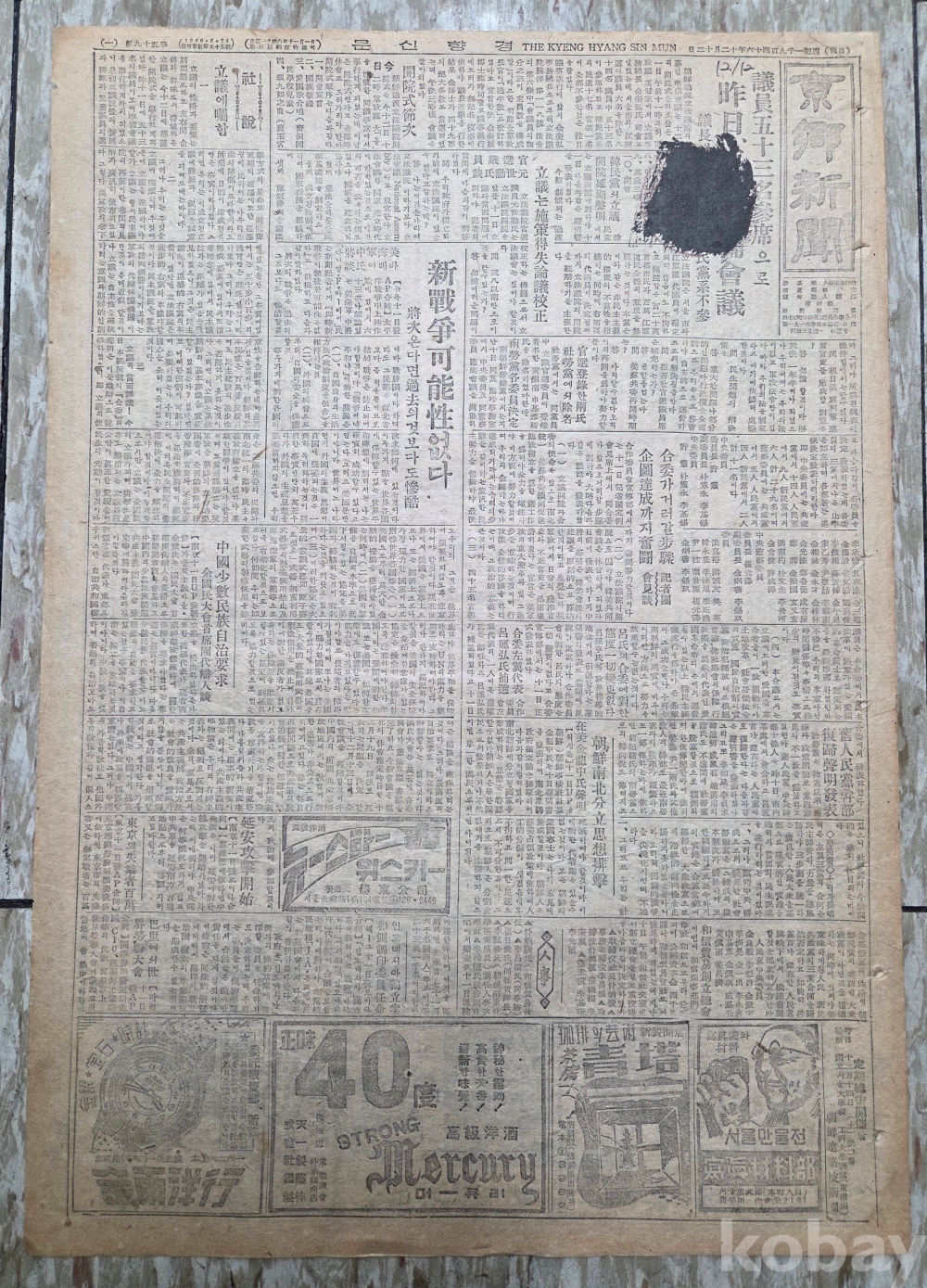 1946년 12월12일자 4면이며 소장인이 먹으로 칠해져 있습니다.