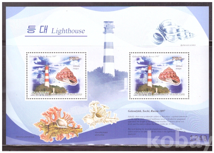 (등대) 북한 2009.10.24 로씨아 질랜드지크등대와 달팽이 sheet of 2 MNH