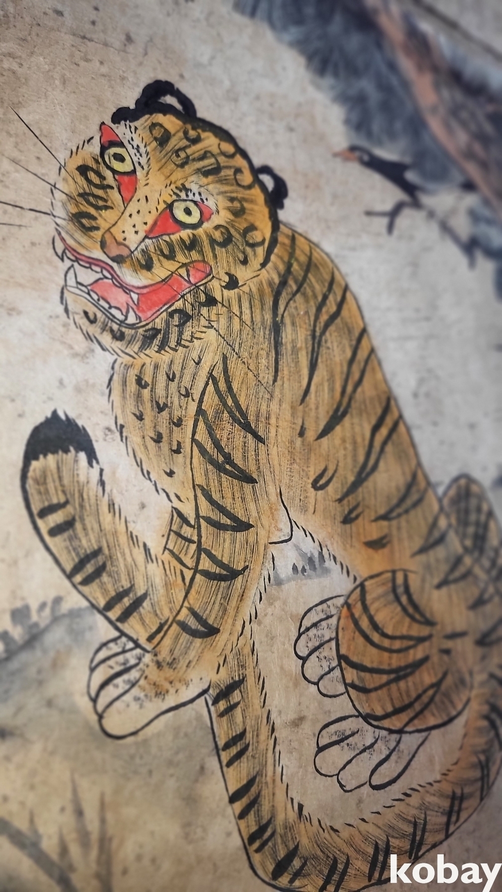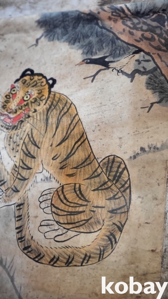 조선시대 장지 바닥에 그려진 까치 호랑이 민화입니다,