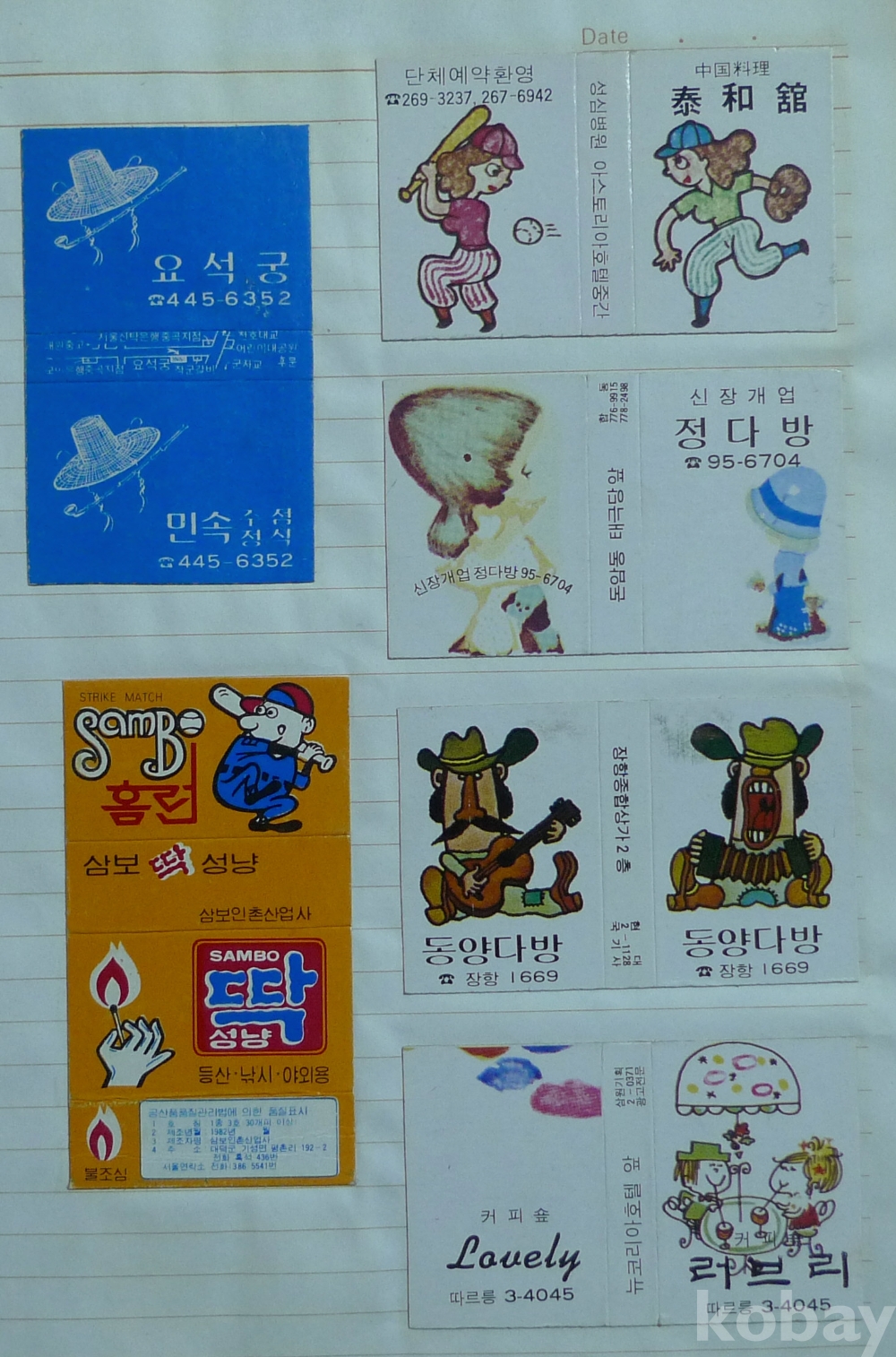 당구장, 다방, 음식점 광고 성냥 모음 11