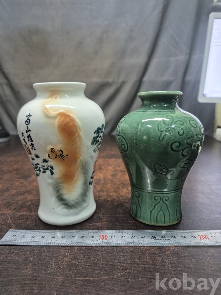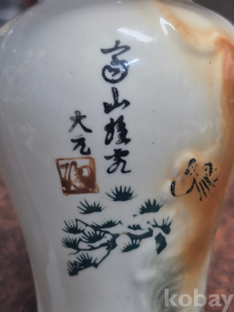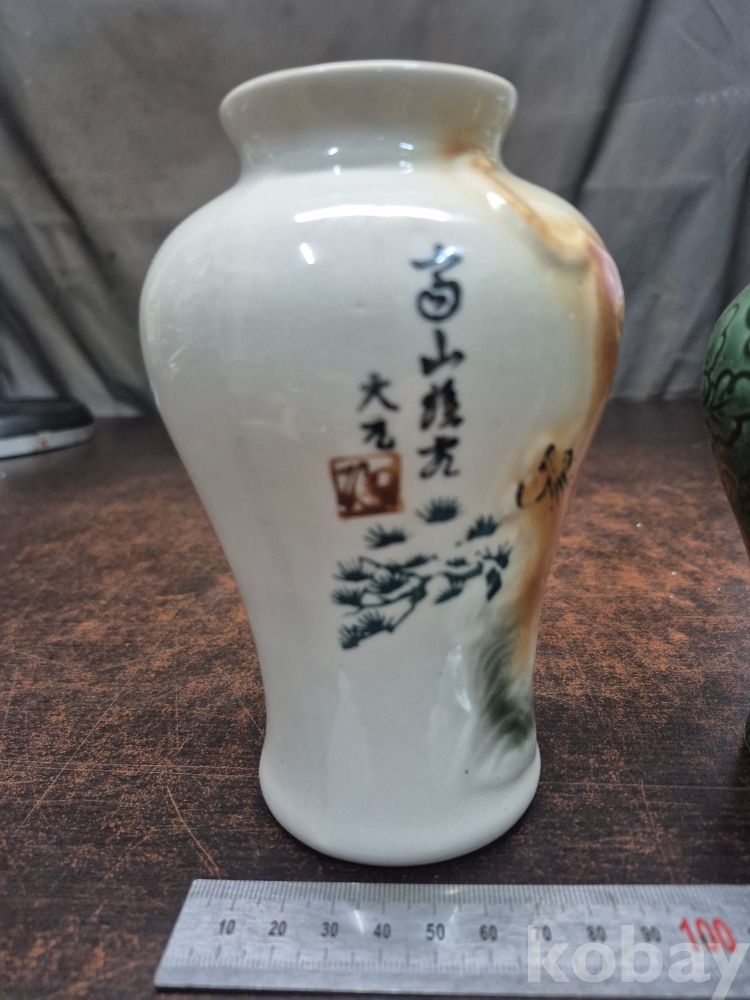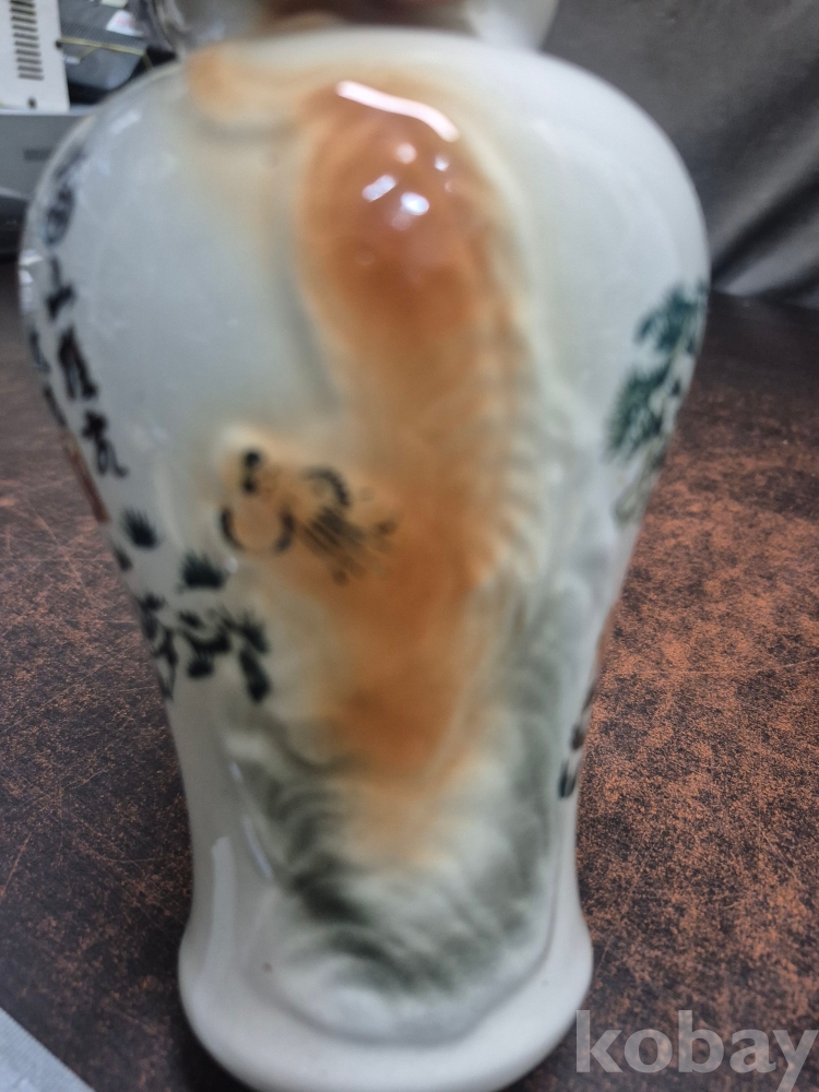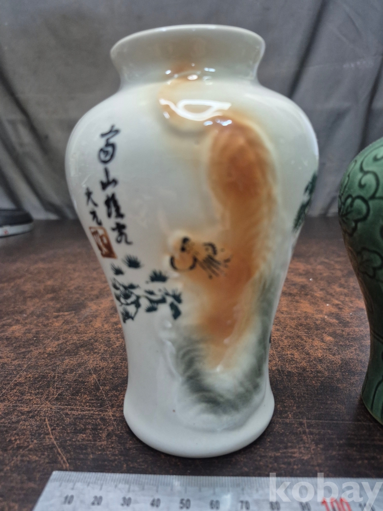 1970-80년대 소품용 호랑이가 그려진 양각 그림과 도자기 2점 일괄 9*9*17