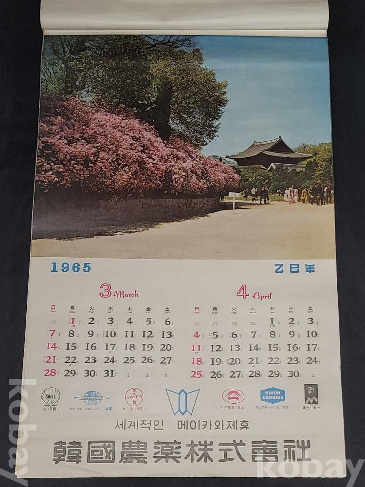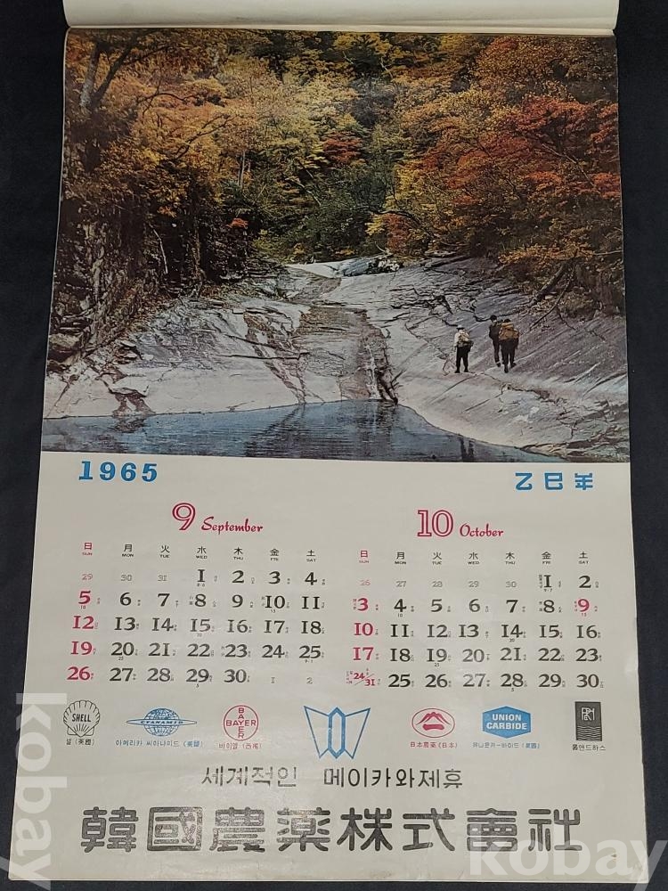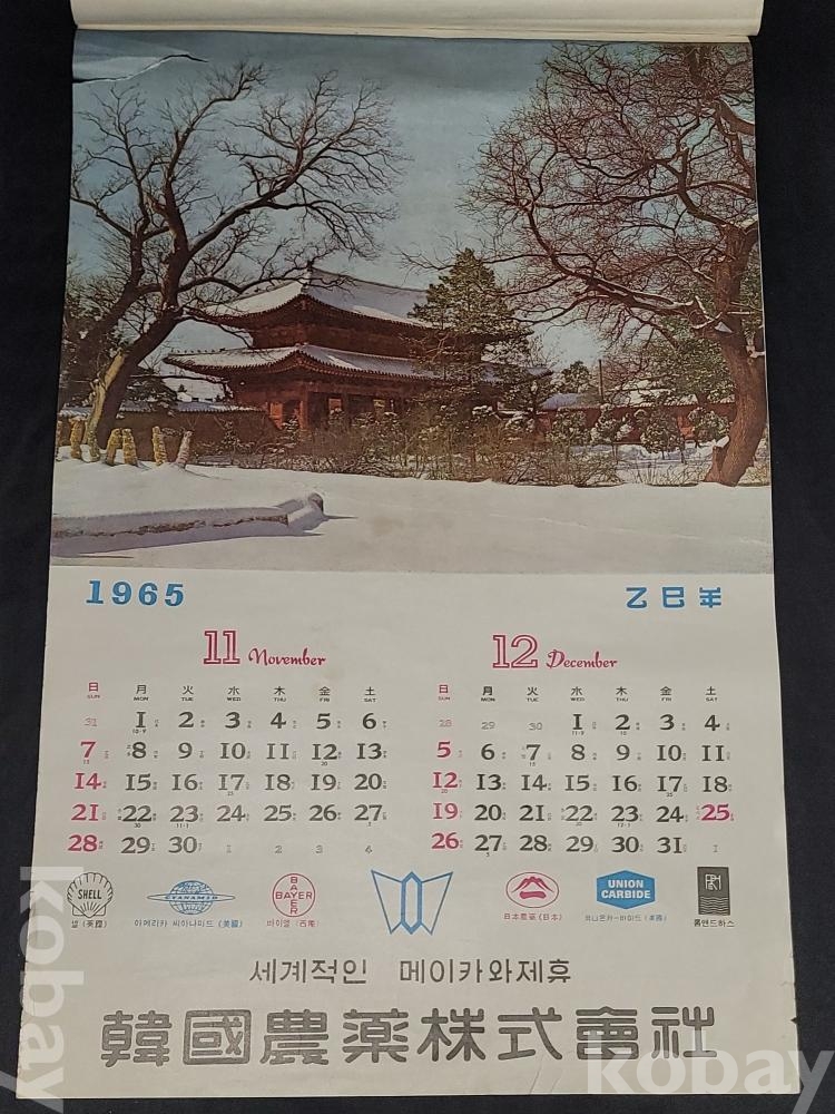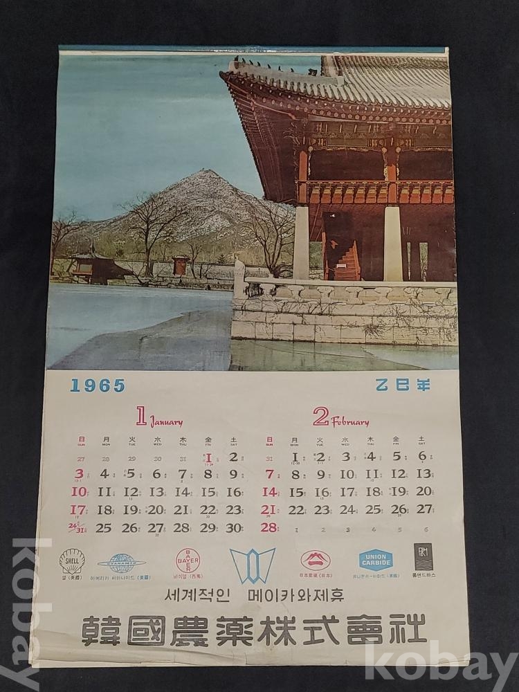 빈티지 세월 감이 느껴지는 희귀한 1965년 韓國農薬株式會社 (한국농약주식회사) 광고용 사진 달력입니다.