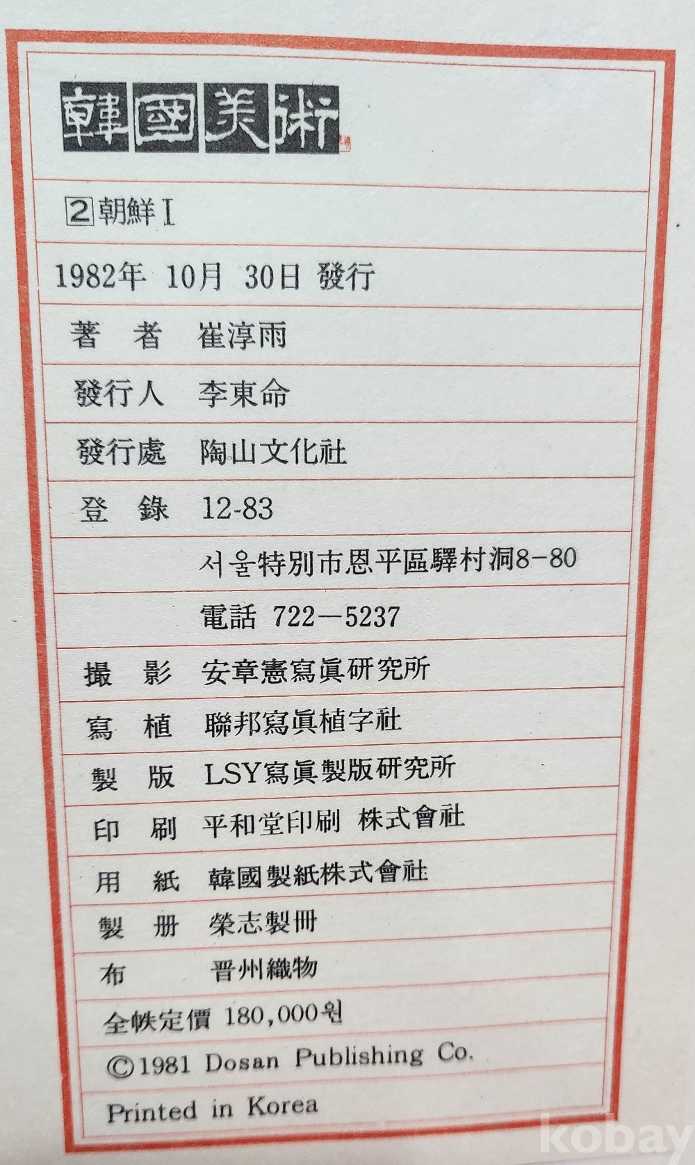 1982년 발행된 한국미술 도감으로 조선시대 작품과 설명이 수록된 귀한 도감입니다,