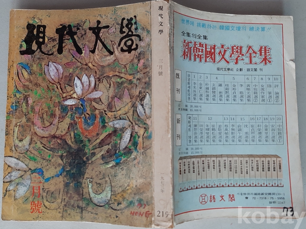 현대문학1973년3월호 NO219 표지화 홍종명