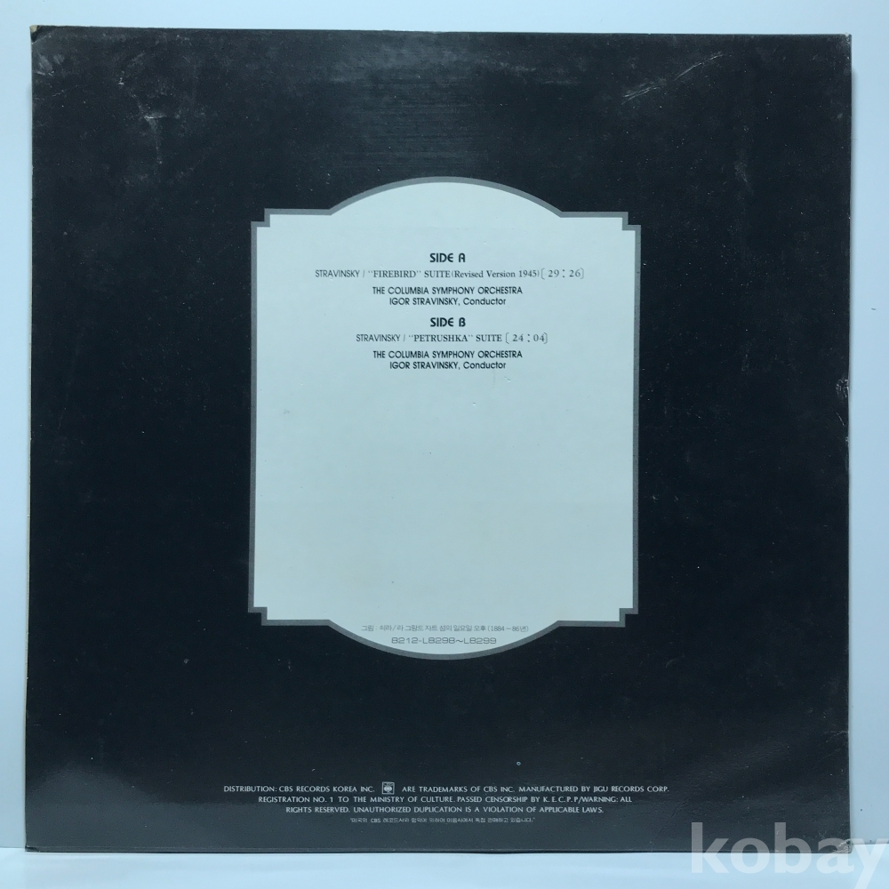 LP 85,000-94 STRAVINSKY - FIREBIRD SUITE / PETRUSHKA SUITE . 자켓 EX 알판 EX 83 년 국내반