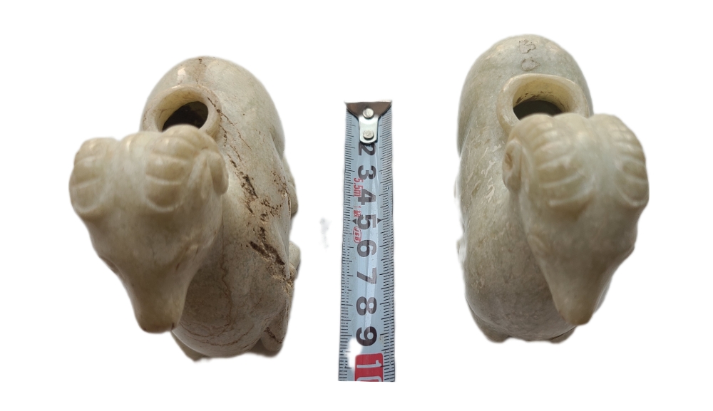 전통적인 백옥(白玉)을 정교하게 조각해 제작된 양 머리 형상의 미니 옥향로입니다.