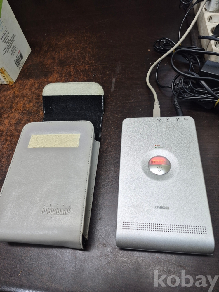 2000년대 외장하드 MOMOBAY FX-1A 6.44기가 바이트 12.7 기가 바이트 사용중 영화 음악 으로 저장되어 있어요 본체 가죽 케이스 USB케이블 어댑터 미포함 입니다 12볼트 어댑터는 구입하셔서 사용하셔야 해요