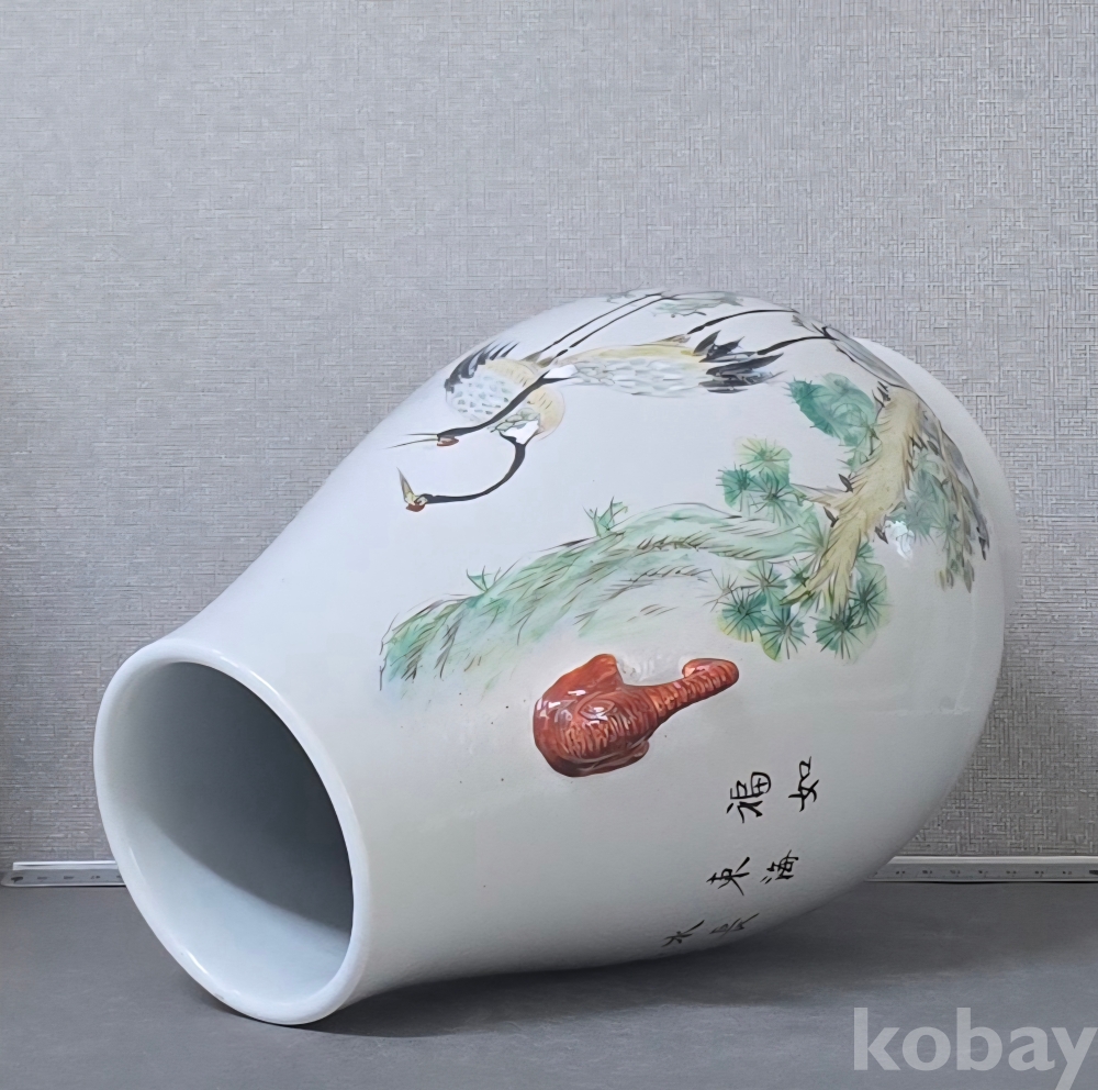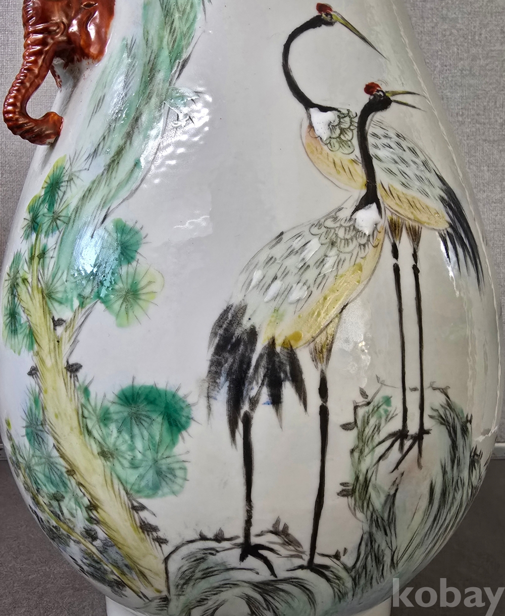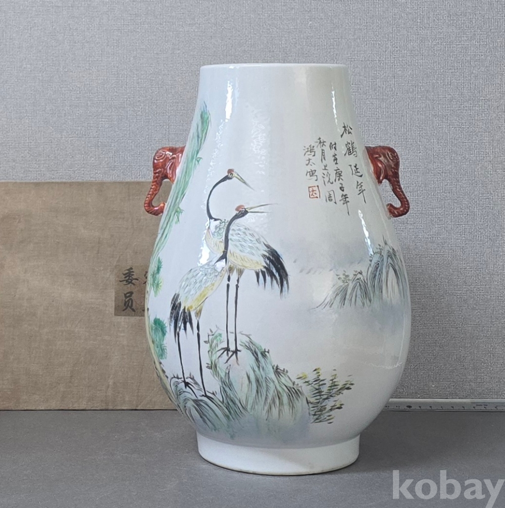 작품은 전사가 아닌 손그림 작품으로, 송학문 도안과 코끼리 형상의 양이를 가지고 있는 작품으로소장가치는 충분할듯 합니다.