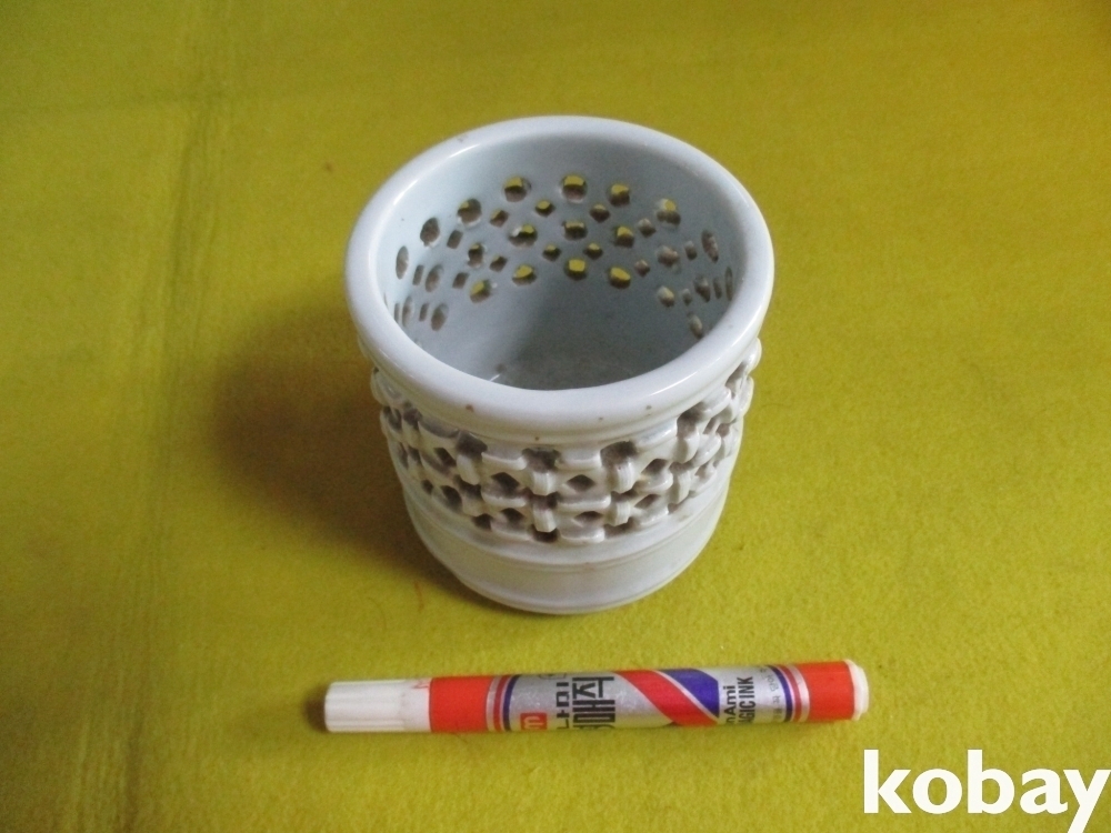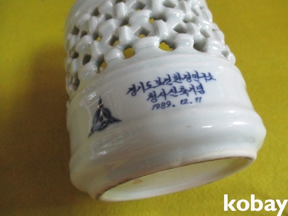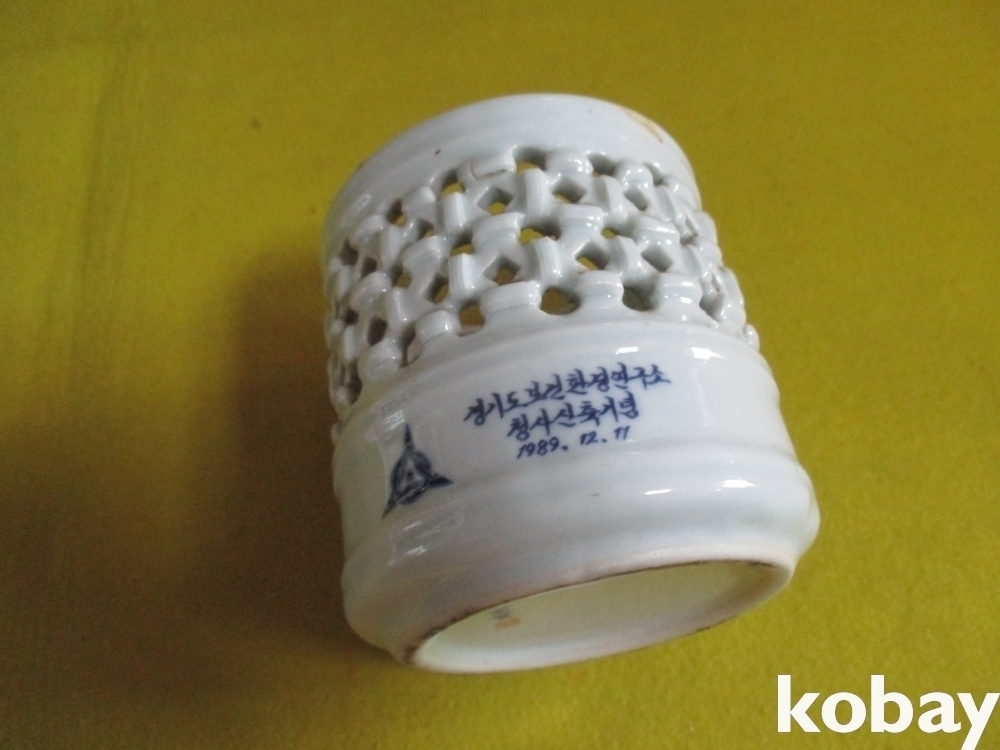 (((도자기붓통))) 경기도 보건환경연구소 청사신축공사 바닥수결있는 투각 도자기 붓통 (1989)