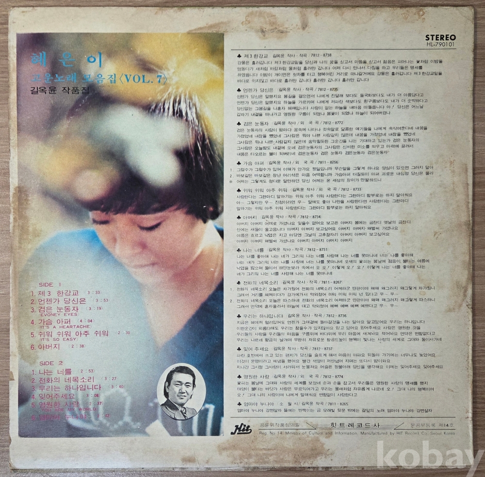 | 자켓상태 | G : 눈에 띄는 손상, 테이프, 필기 존재 | 음반상태 | G : 눈에 띄는 스크래치, 튐 또는 노이즈 발생 | 발매정보 | 알수없음 | 가사지여부 | 무 |
