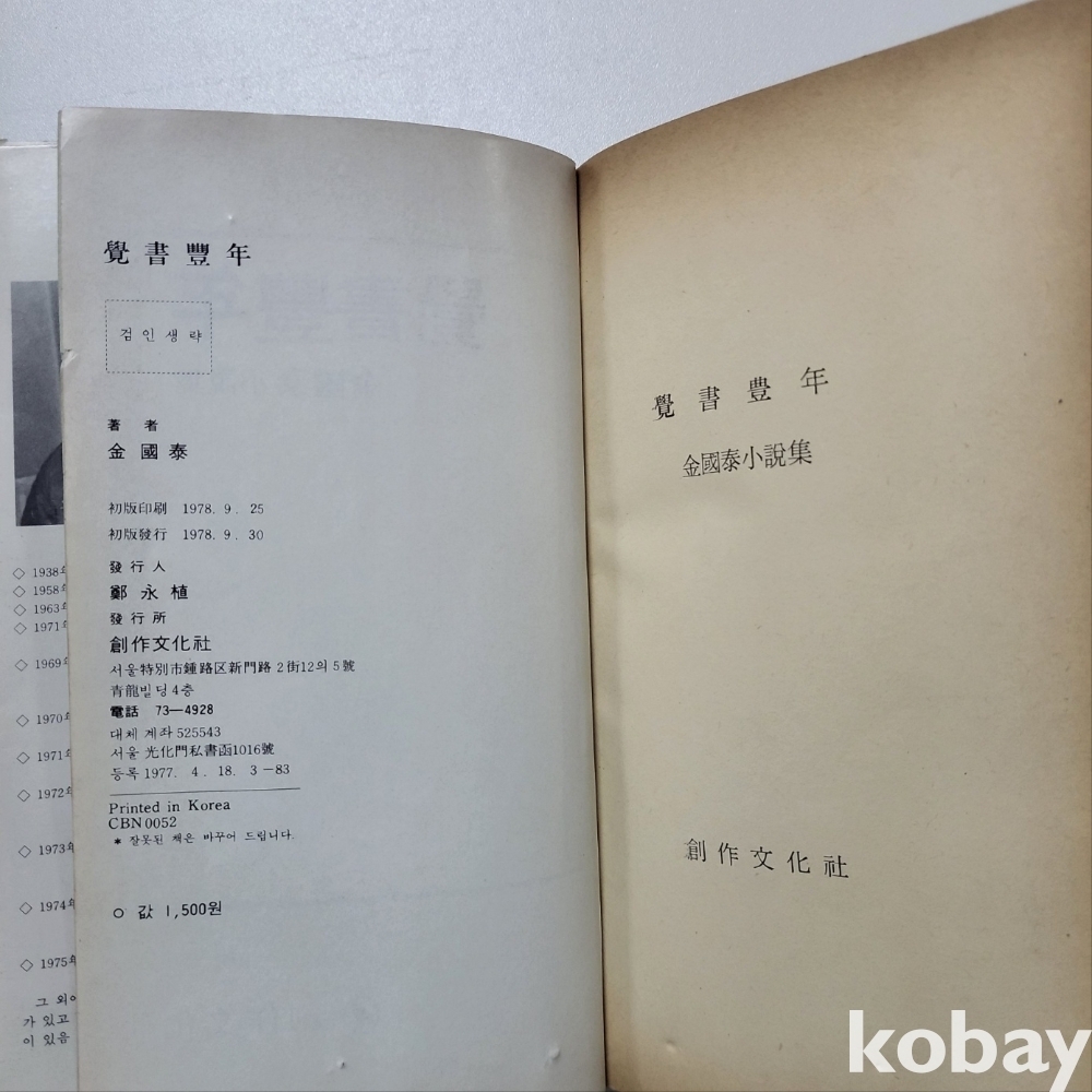 [희귀본] 각서풍년 (김국태소설집/ 창작문화사 1978초판) ; 중급/E08