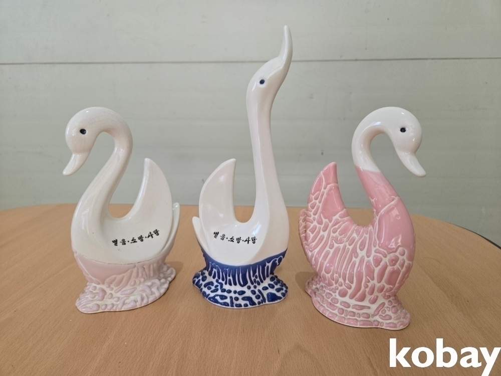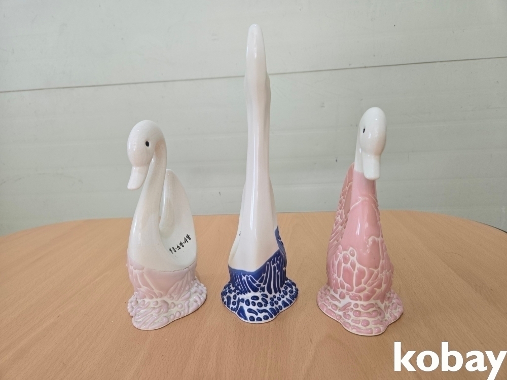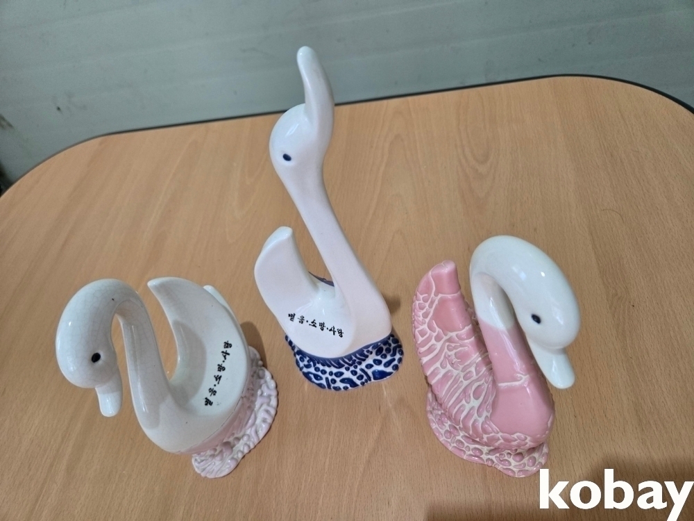백조 형상 도자기 소품 3개 입니다.
