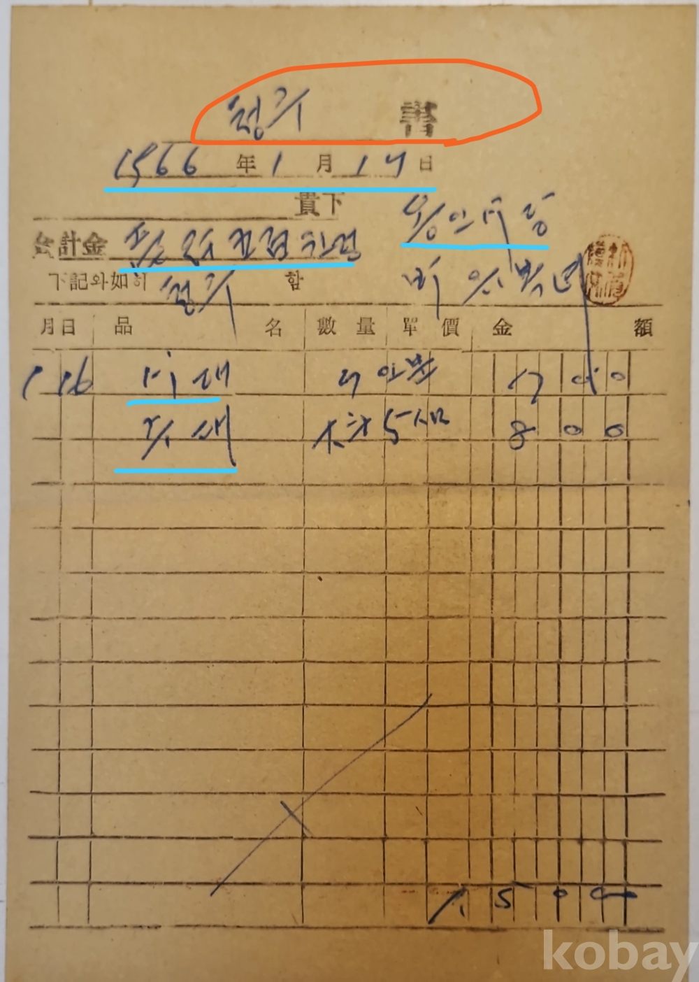밥값과 술값 1,500원 청구서가 남아 있다.