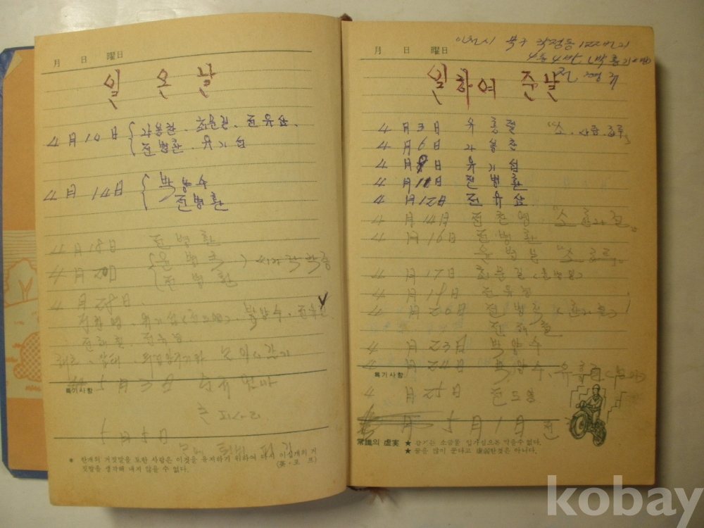 만년일기 - 일 온날, 일하여 준 날 등 (모내기, 벼베기, 두렁양 등)