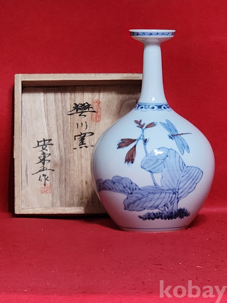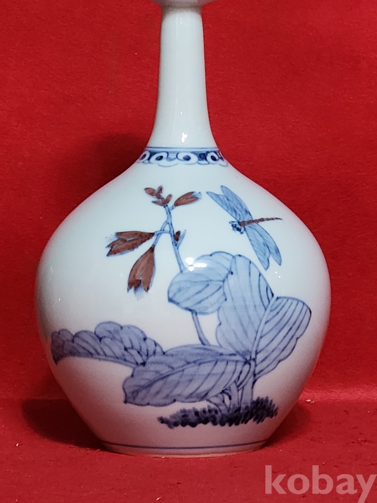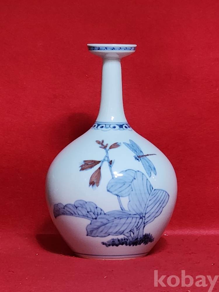 인간문화재 호산 안동오 선생님의 청화백자 진사채 잠자리 입니다