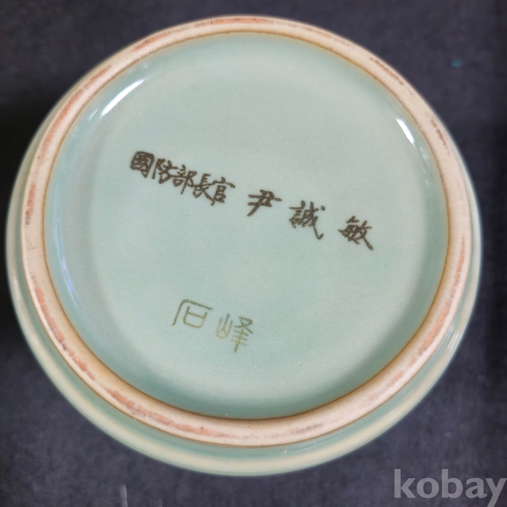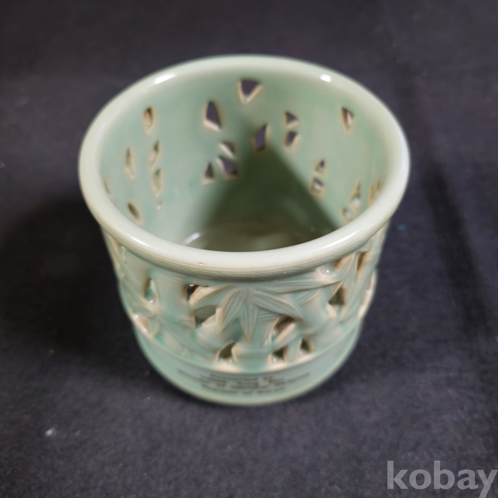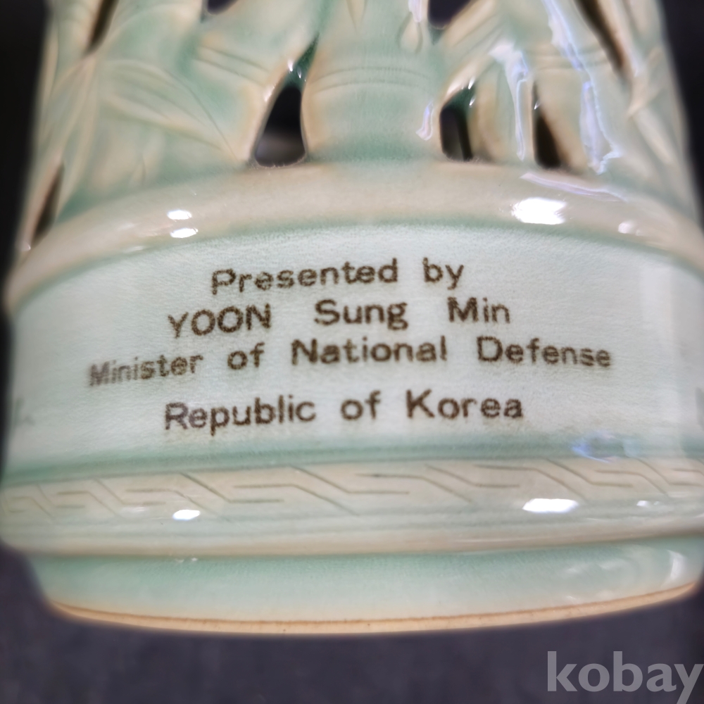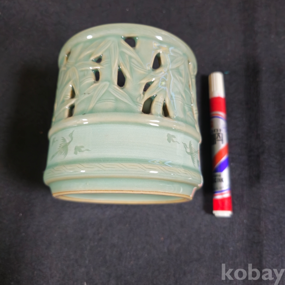 (((군자료/근현대사자료))) 오래전 대나무 투각 鶴문양 국방부장관 尹城敏 도자기붓통