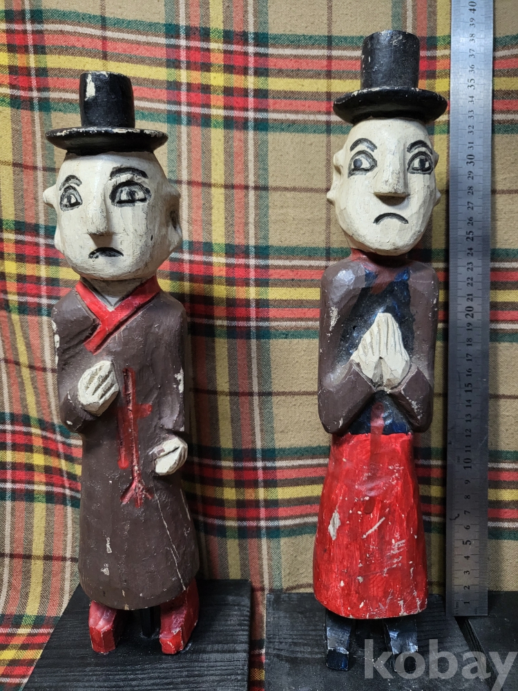 상태는 사진보시듯 각각 온전한 원형을 유지하고는 있어 큰손상없이 대체로 무난하고 양호하나, 목재재질상 각각 부분적인 크랙이 있습니다.