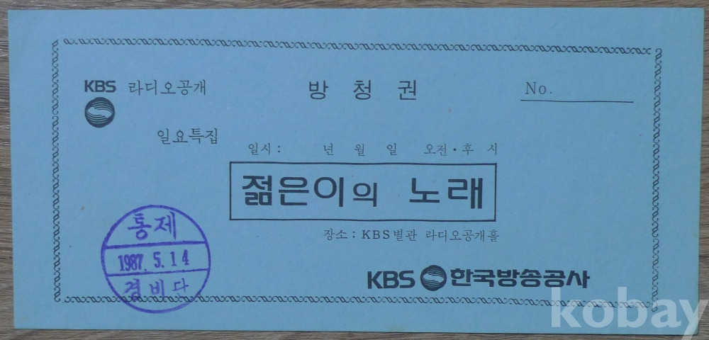 1987년 KBS 라디오 젊은이의 노래 방청권