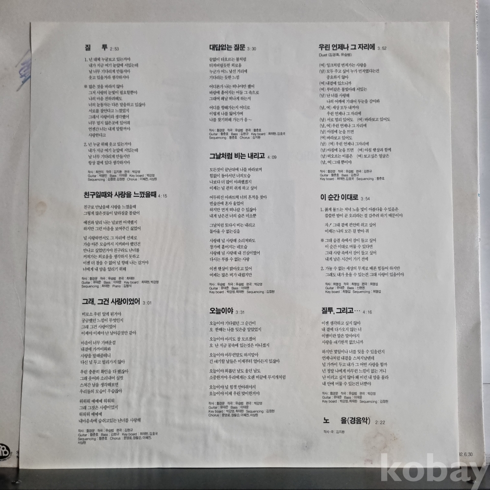 | 자켓상태 | VG : 주름, 접힘, 모서리 찢김 다수 | 음반상태 | EX : 재생에 영향 없는 가벼운 기스 존재 | 발매정보 | 초반 | 가사지여부 | 유 |