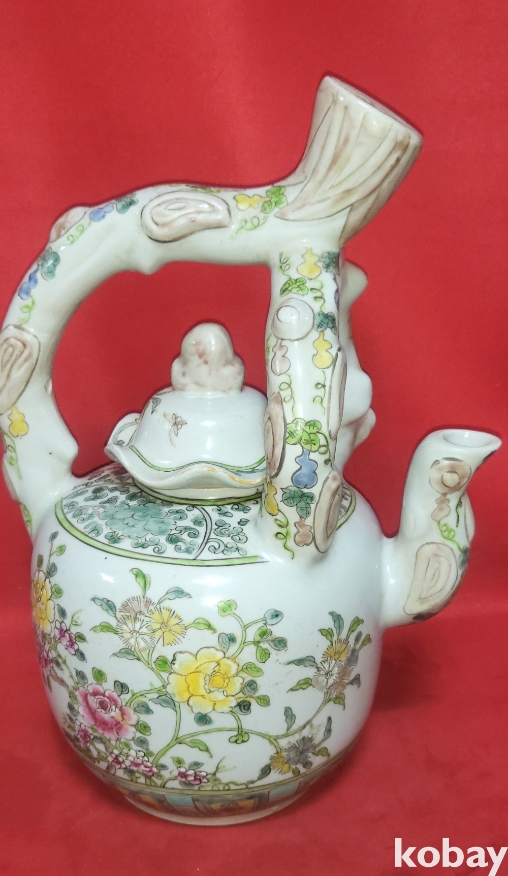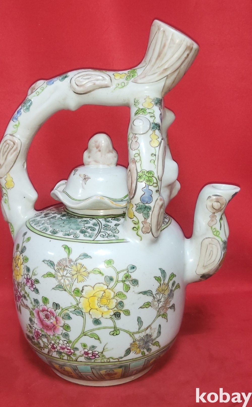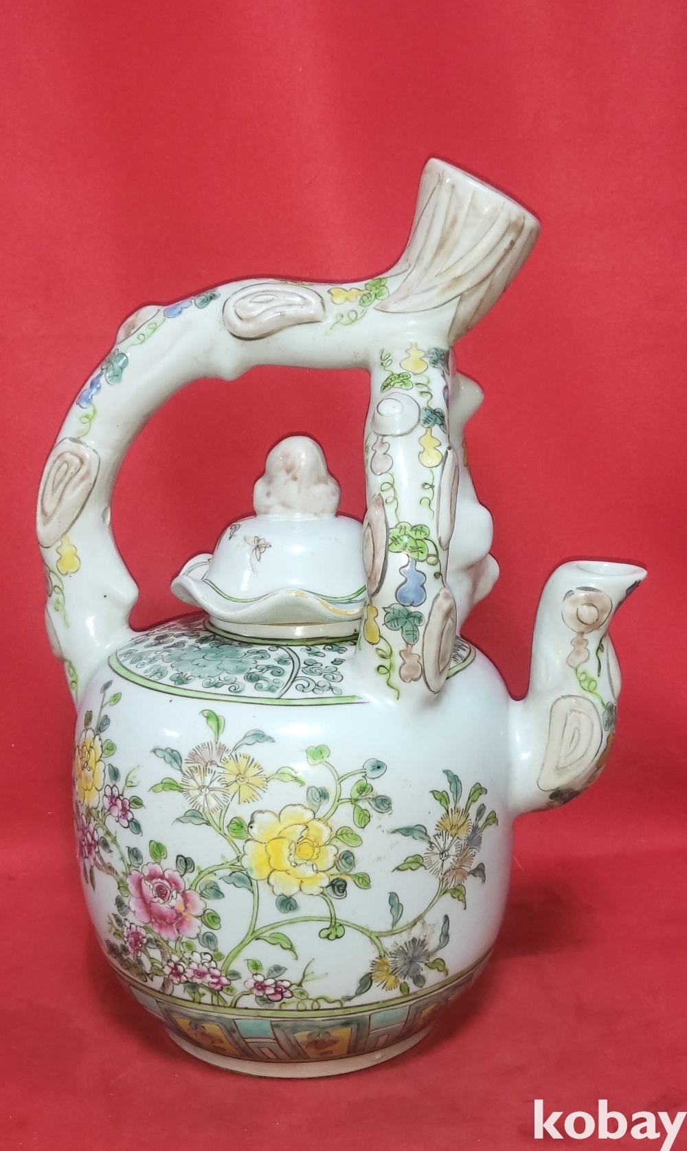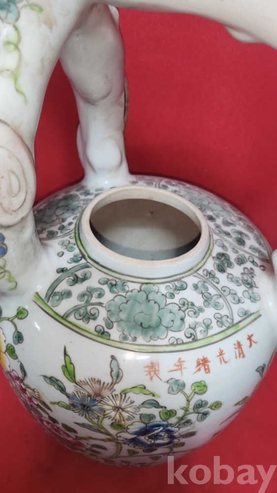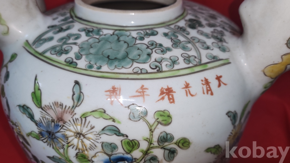 대청광서연제 분채 꽃문양 대형급 주전자입니다,