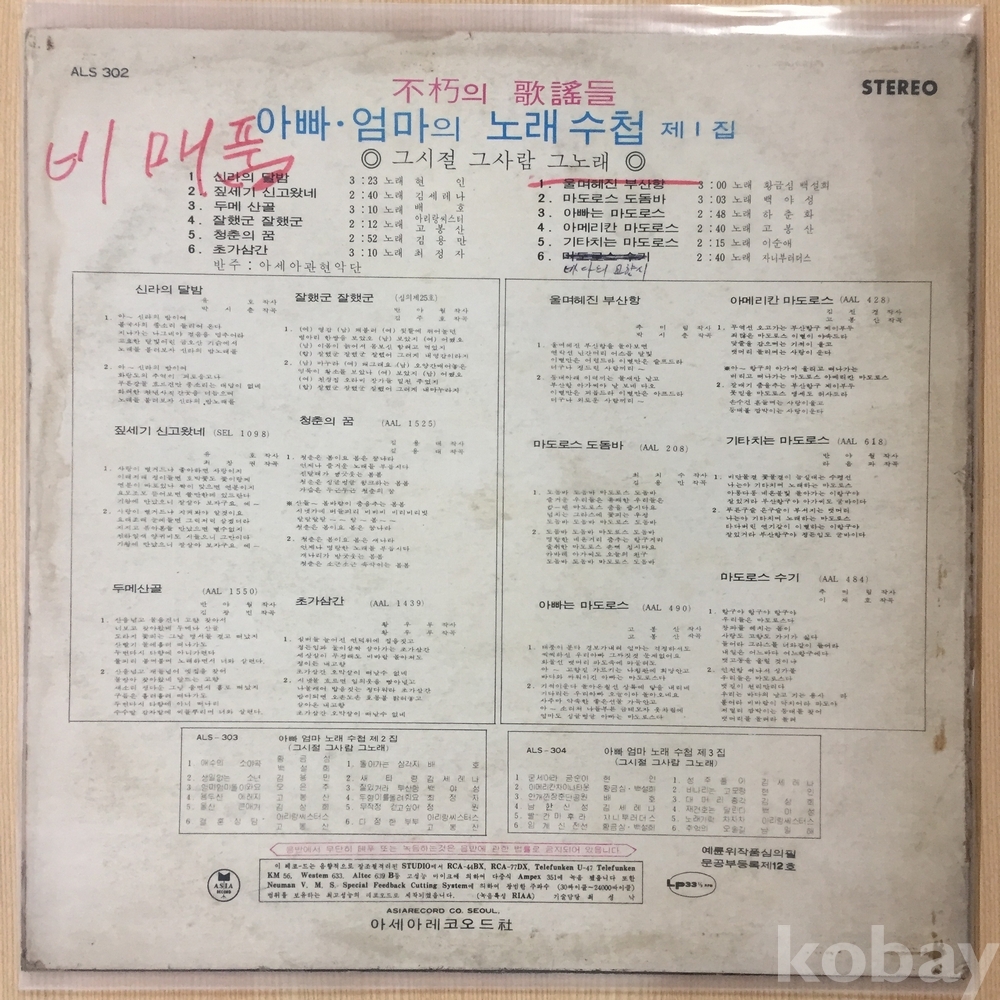 . 가요음반 대부분은 휘어짐이나 손상을 방지하기 위해 무지싱글자킷을 하나 더 사용하여 보관되었던 음반들입니다.